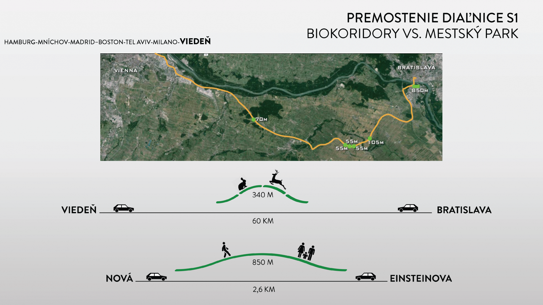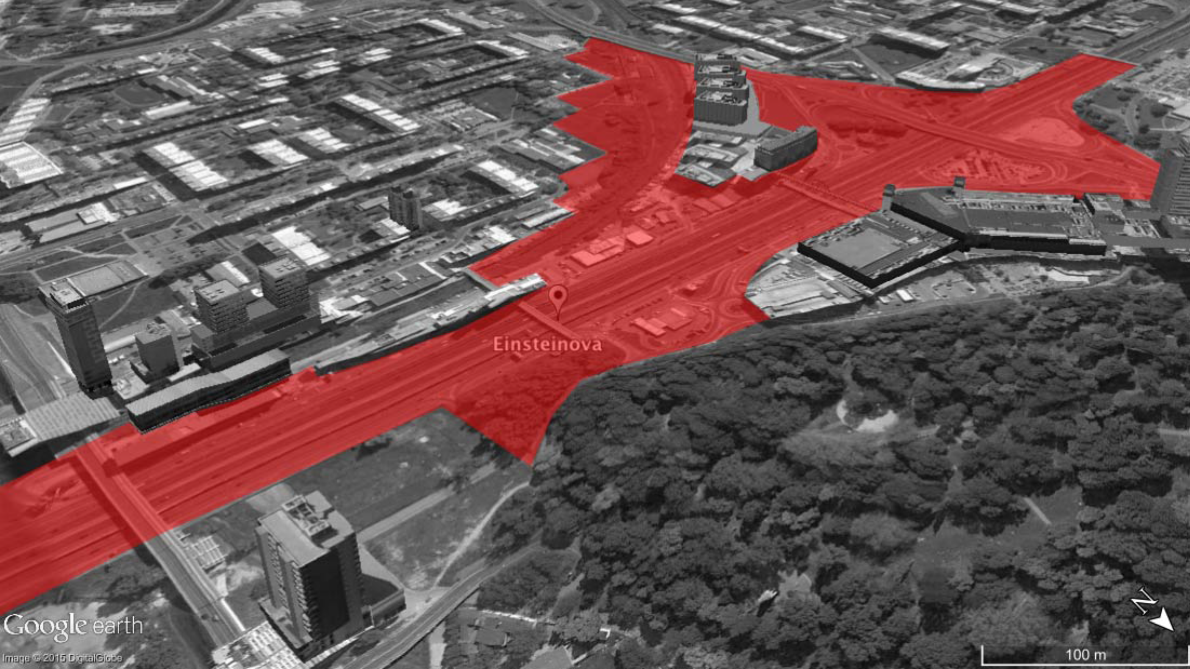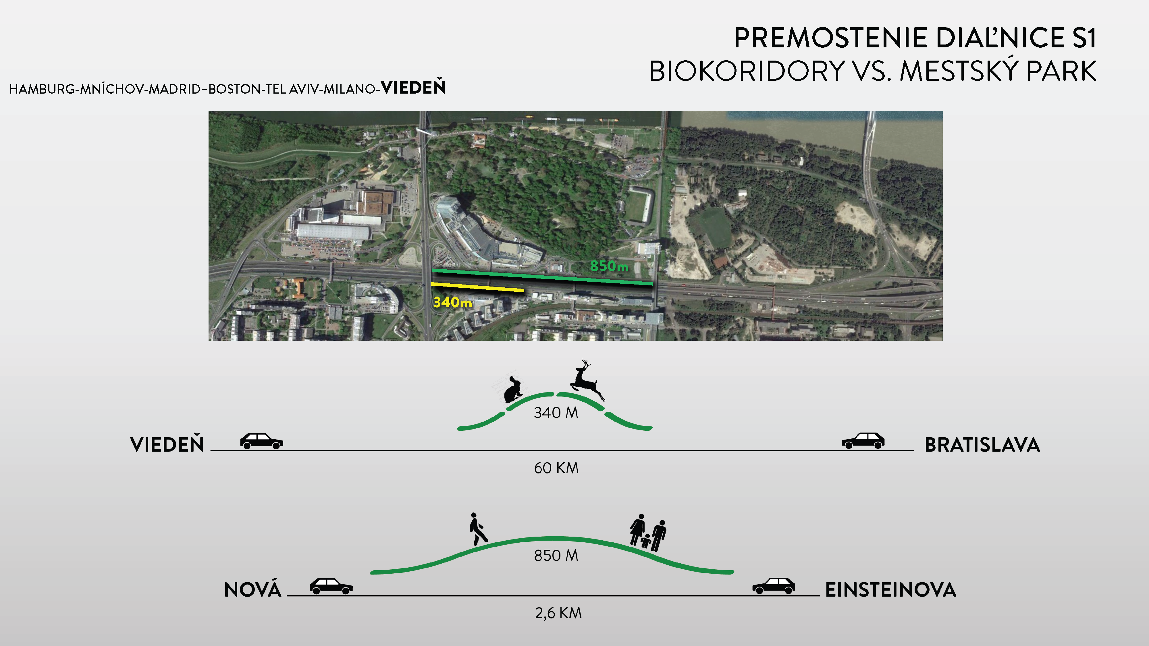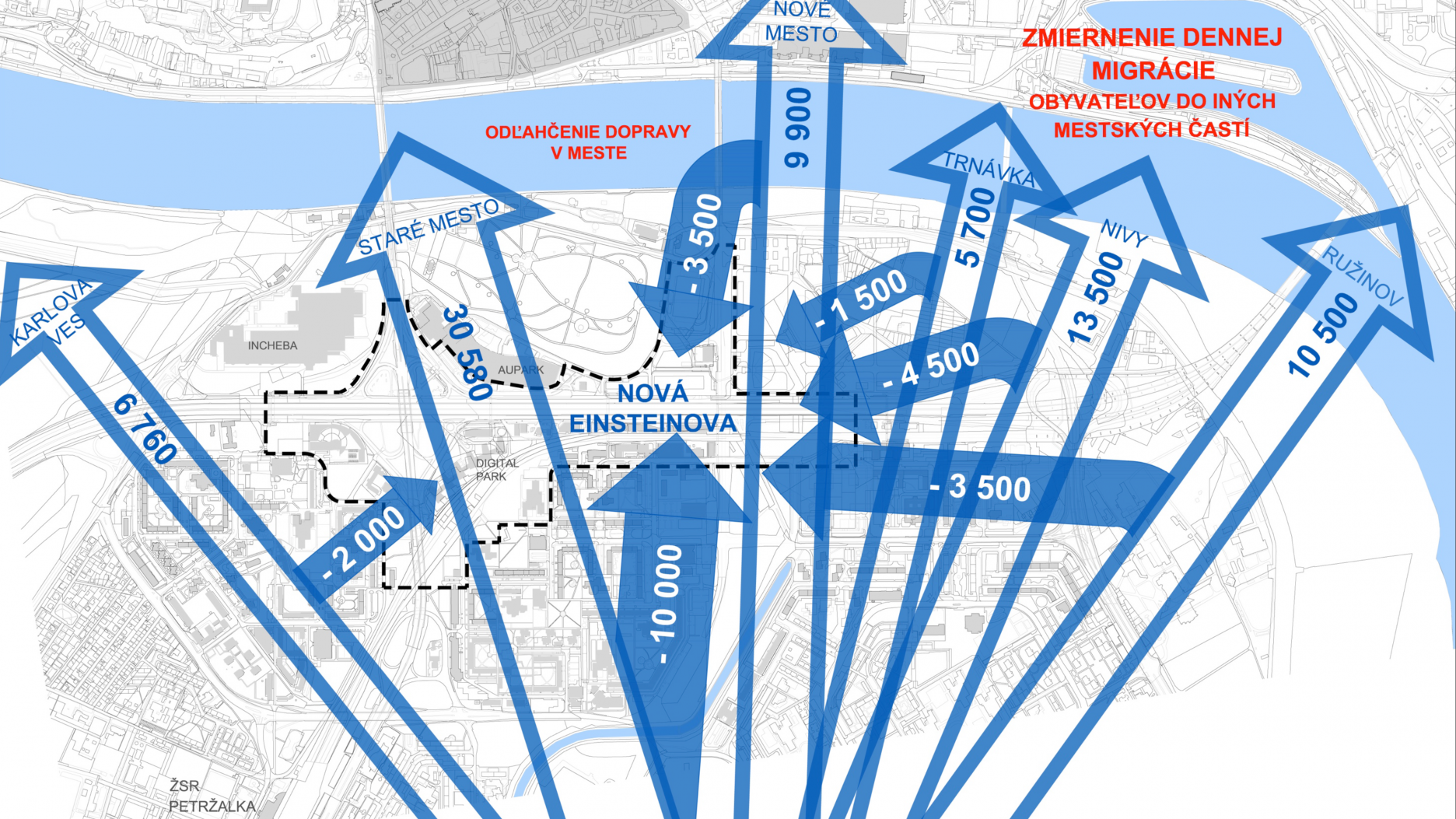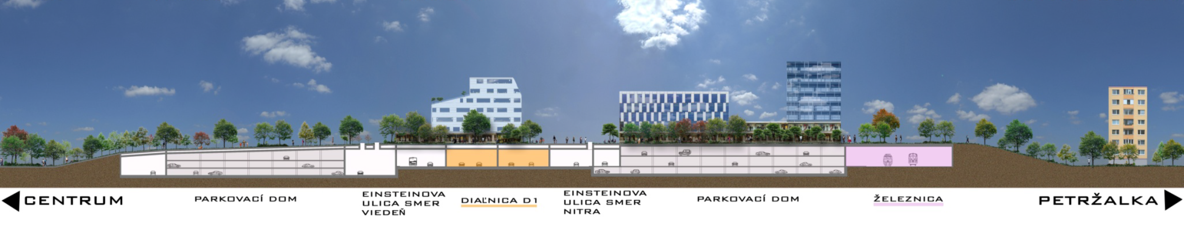 Návrh počíta s prekrytím rušnej štvorprúdovej komunikácie, ktorá pretína mesto. Rušná dopravná tepna v súčasnosti rozdeľuje Petržalku a sídlisko vzďaľuje od dunaja a Sadu Janka Kráľa. Obchvat na Einsteinovej ulici od začiatku urbanisti aj architekti kritizujú. Mestská diaľnica totiž oddelila najľudnatejšiu mestskú časť od Starého Mesta aj zelených plôch pri Dunaji.