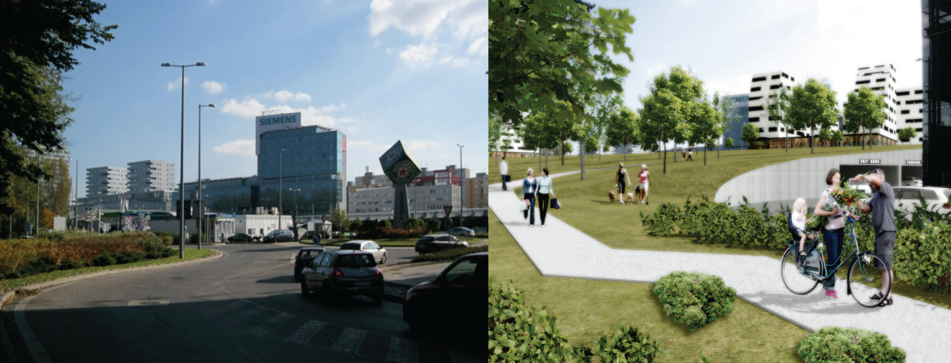 V novovzniknutom priestore medzi budúcim premostením a súčasnou úrovňou terénu, vedľa existujúcich komunikácií môžu vzniknúť viacúrovňové parkovacie kapacity pre potreby obyvateľov a užívateľov novej mestskej zóny.