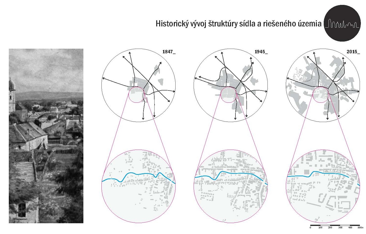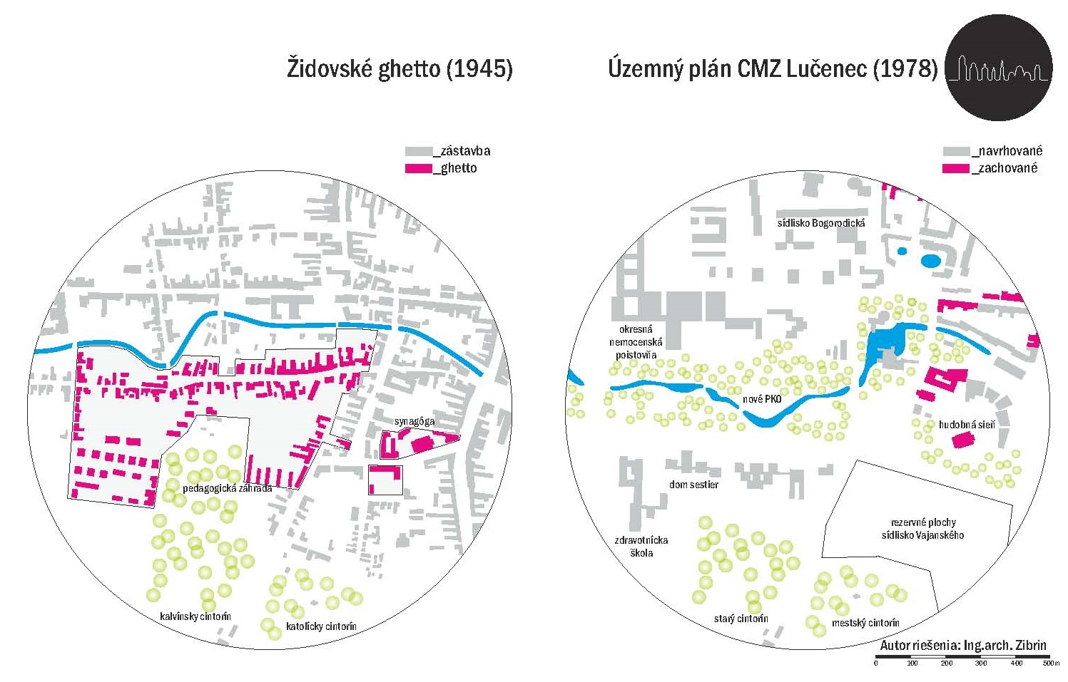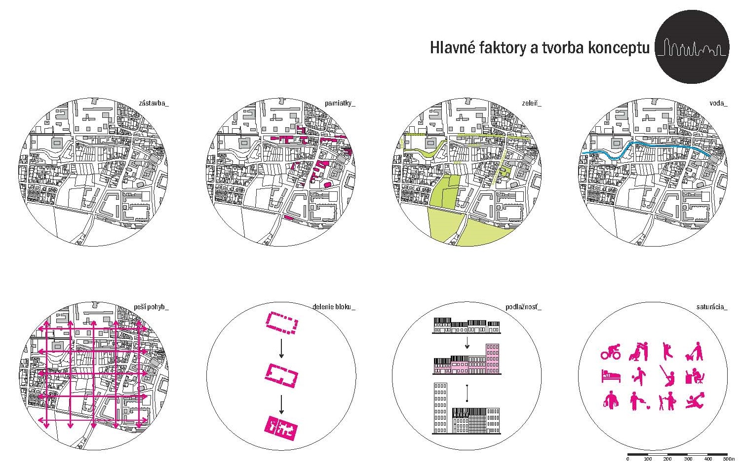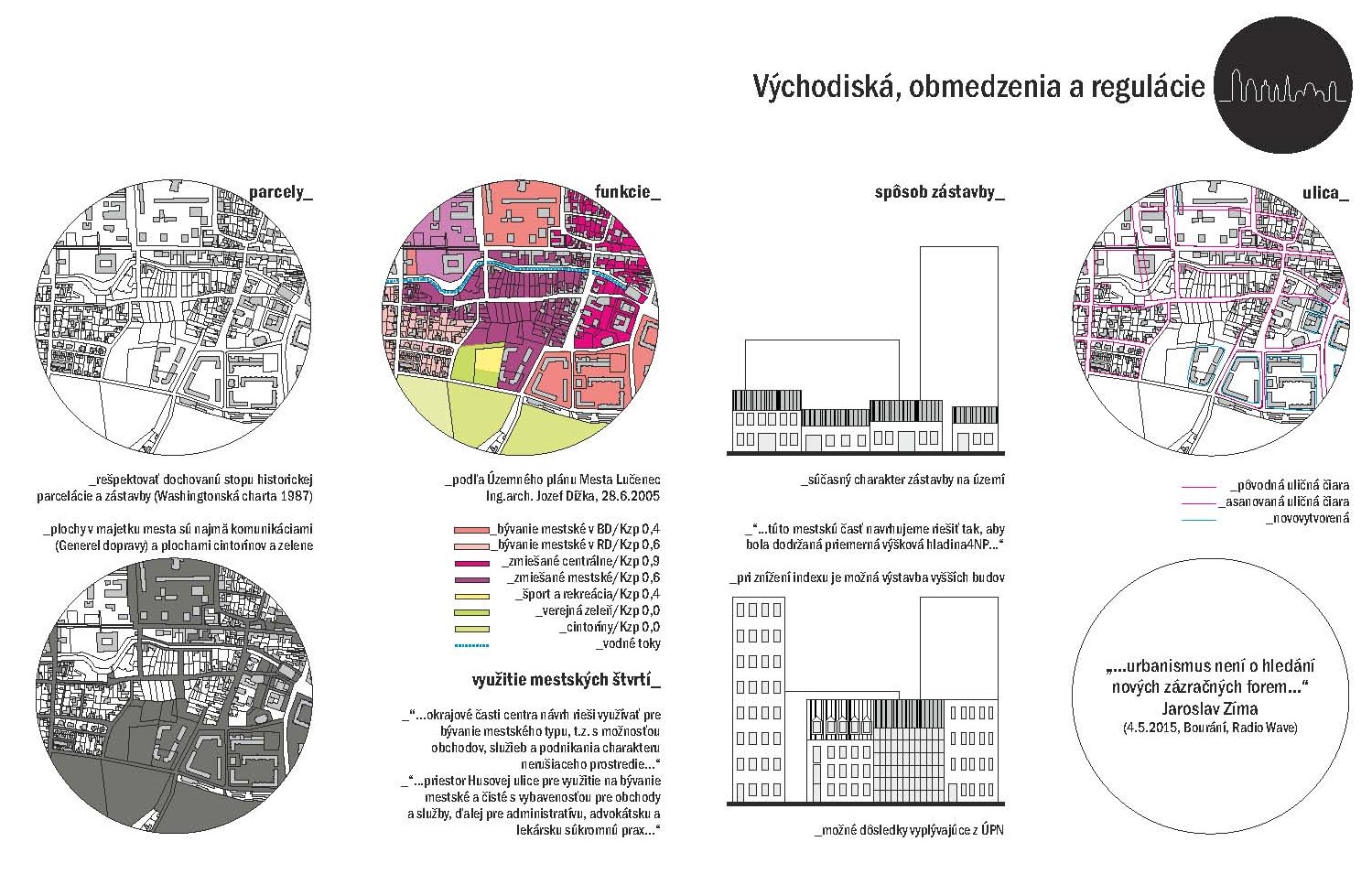 Na základe dôkladných analýz sme určili niekolko jednoznačných determinánt riešenia. Najdôležitejším faktorom je stále dochovaná čast zástavby po bývalom ghette. Rovnako sa nám dochovala na území mimoriadne cenná historická zeleň, tzv. Pedagogická záhrada z 18. storočia a pôvodne Kalvínsky cintorín zo 17. storočia. V okrajovej časti územia je hneď niekoľko mimoriadnych a pamiatkovo chránených budov. Tieto ale ostro kontrastujú s neskoršou panelovou výstavbou, najmä - v priestoroch Ulice garbiarskej, s Chirurgickým pavilónom NsP Lučenec. Väcšina pozemkov popri ulici je opustená a chátra, na základe podrobnejšieho bádania v dostupných dokumentoch vieme urćit základné regule, ktorých sa budeme pri navrhovaní držať.