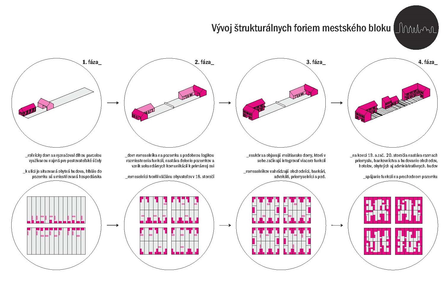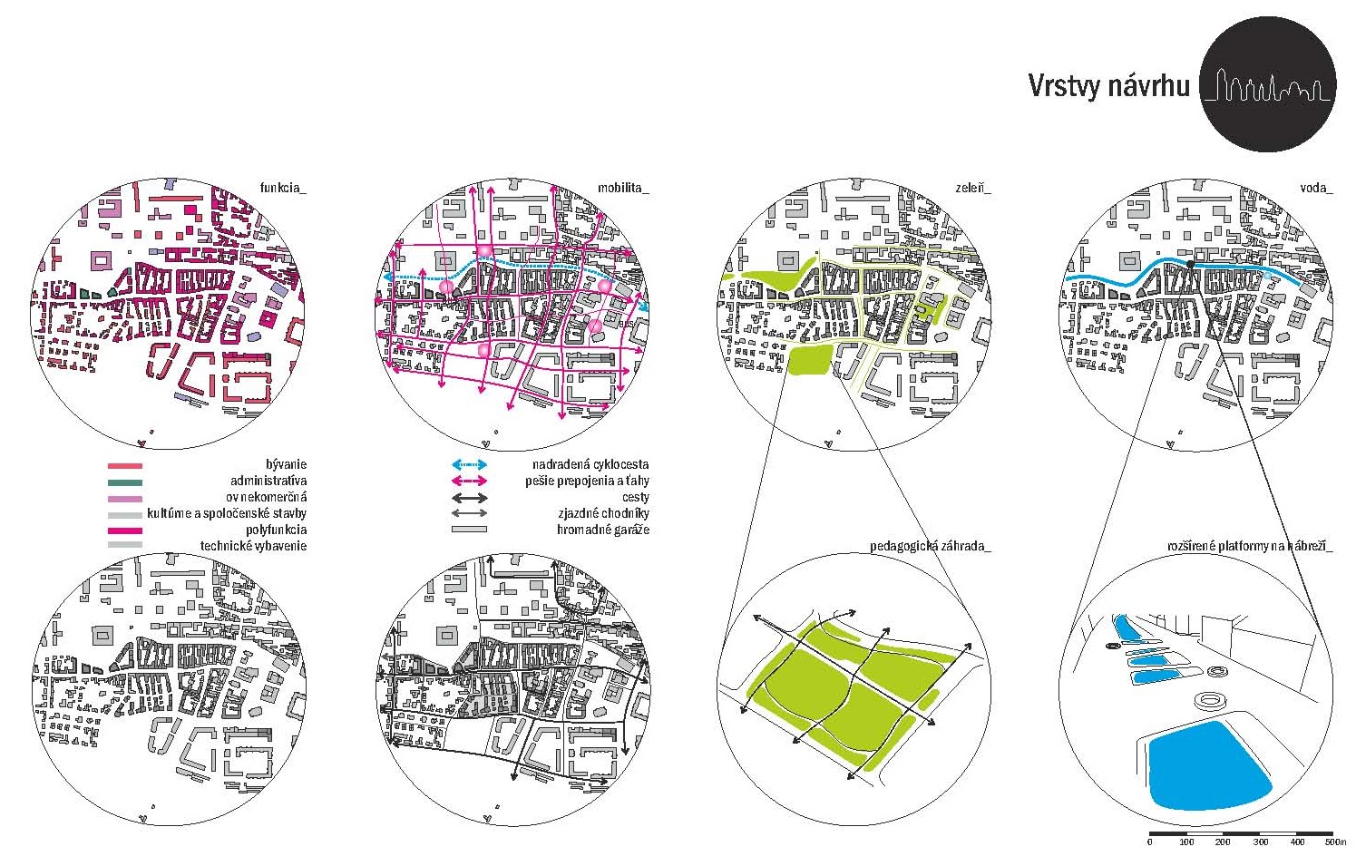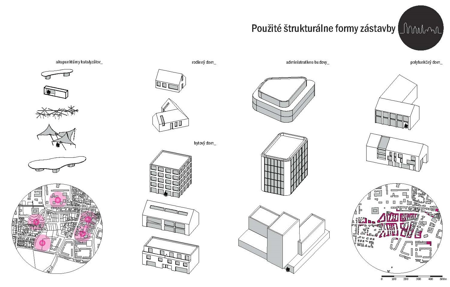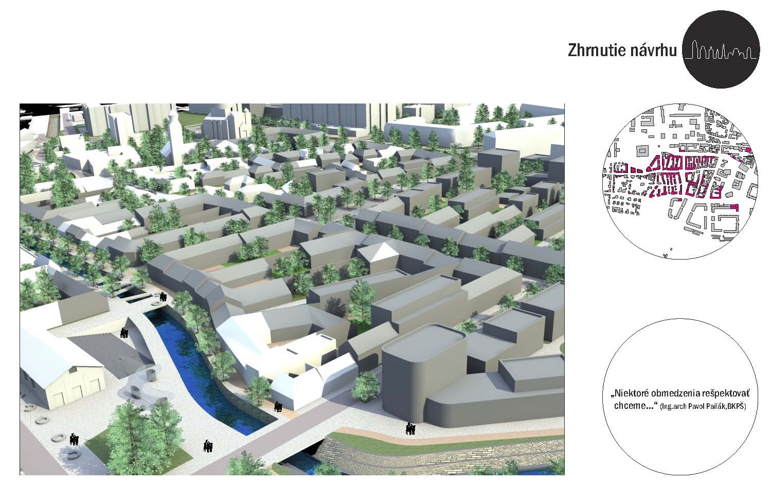 Našou ambíciou bude vytvorenie polyfunkčnej a živej mestskej štruktúry, čerpajúc inšpirácie najmä z dobre fungujúcich štruktúr samotného mesta Lučenec. Cieľom riešenia bude obnova a rehabilitácia pôvodných mestských blokov s tradičnými meštianskymi a remeselníckymi domami. Samozrejme, dnes budeme k funkcií bývania, ktorá je vzhľadom aj na územný plán nevyhnutná a žiadúca, priraďovat kapacity pre obchod, služby, remeslá, bankovníctvo a v kontaktovej polohe k pavilónu nemocnice vytvoríme akési administratívne centrum lokality. Tu bude situovaná aj zastávka MHD, ktorá dnes v území absentuje. Dalšie zastávky budú lokalizované mimo riešeného územia, rešpektujúc ale dochádzkové vzdialenosti.