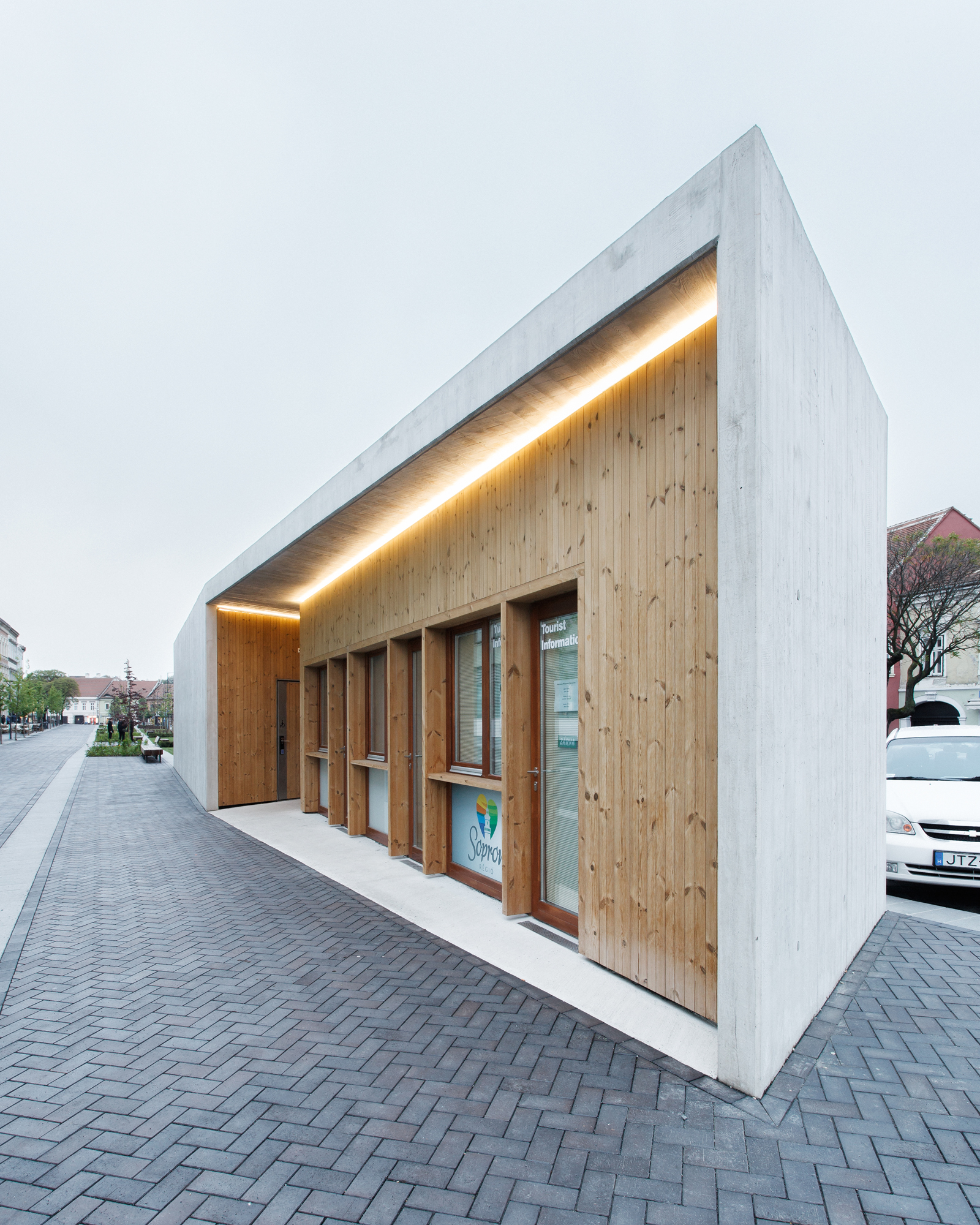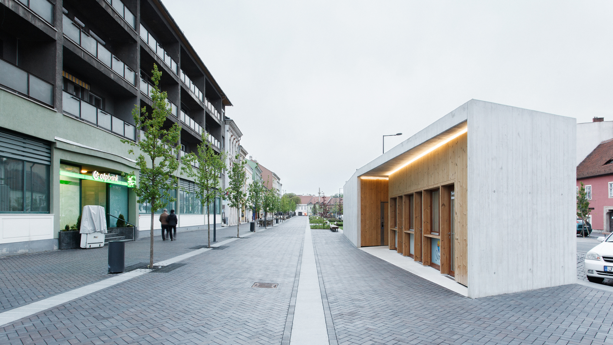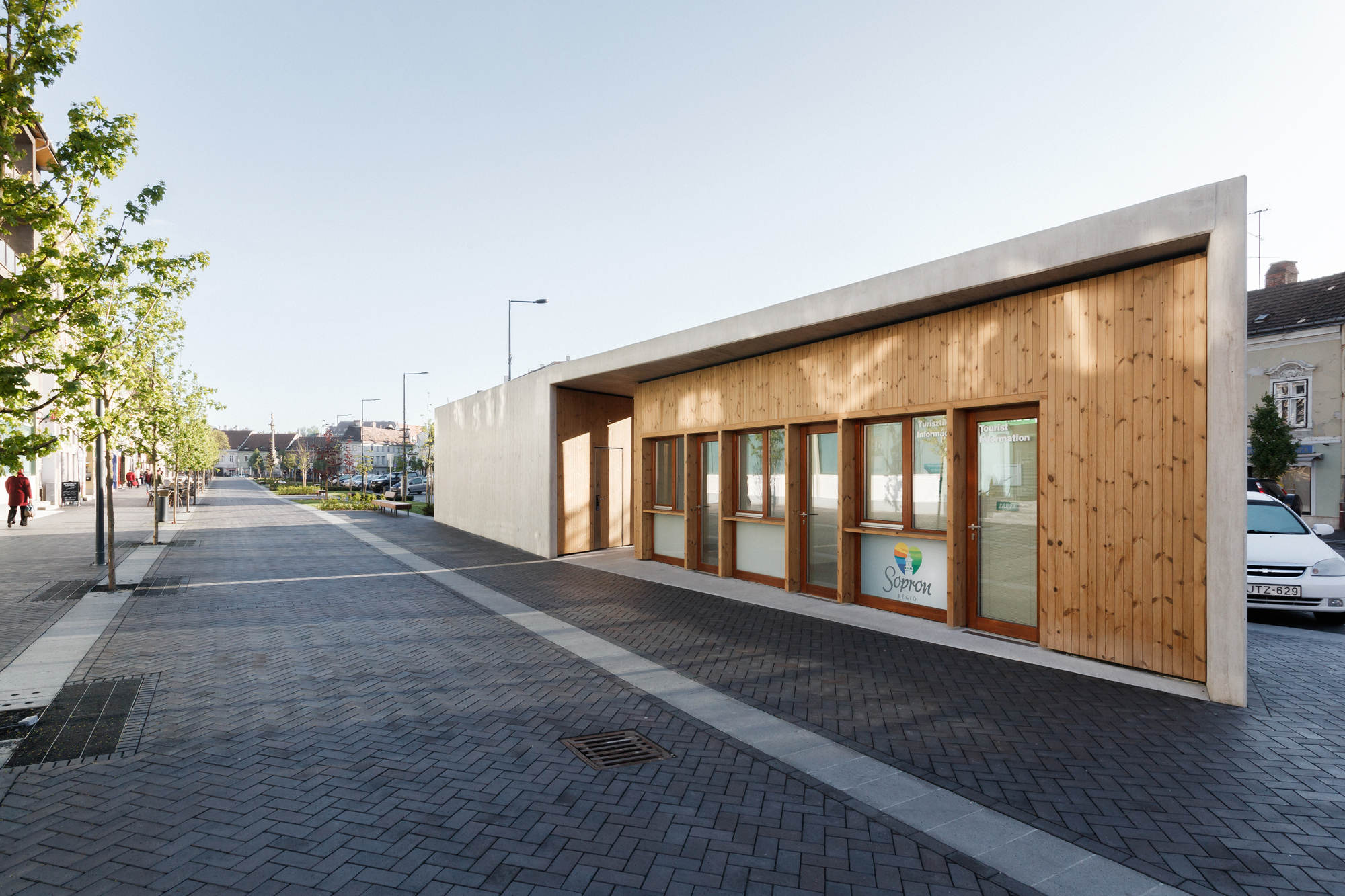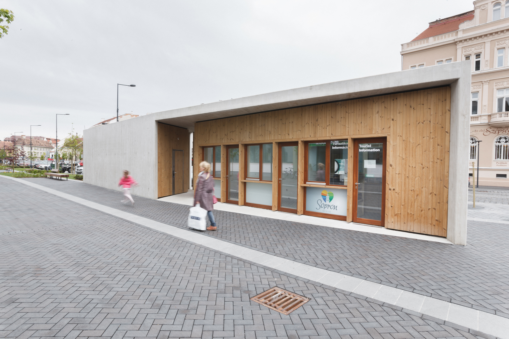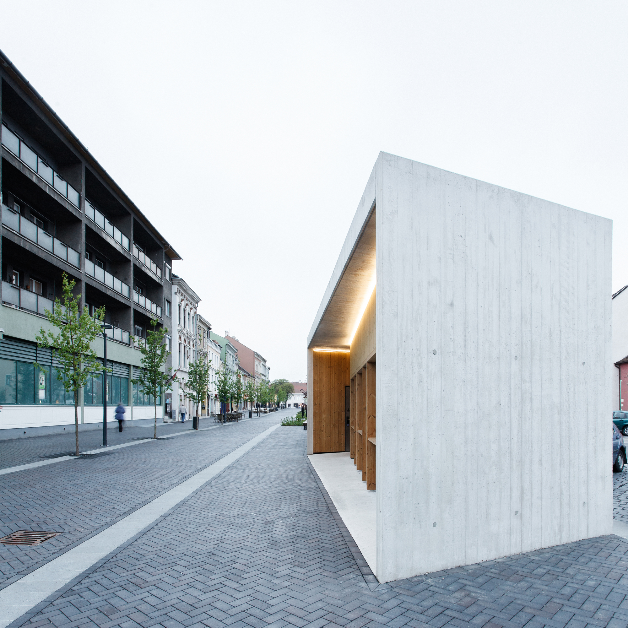 V rámci rekonštrukcie bulváru vznikol na námestí pavilón, kde je umiestnené zázemie a toalety. Pavilón je odliaty z pohľadového betónu s výraznou textúrou debnenia. Odliate fixné tieniace prvky a fasáda z drevených panelov evokuje materialitu vynikajúcich pamiatkových rekonštrukcií realizovaných v meste počas druhej polovice 20. storočia.