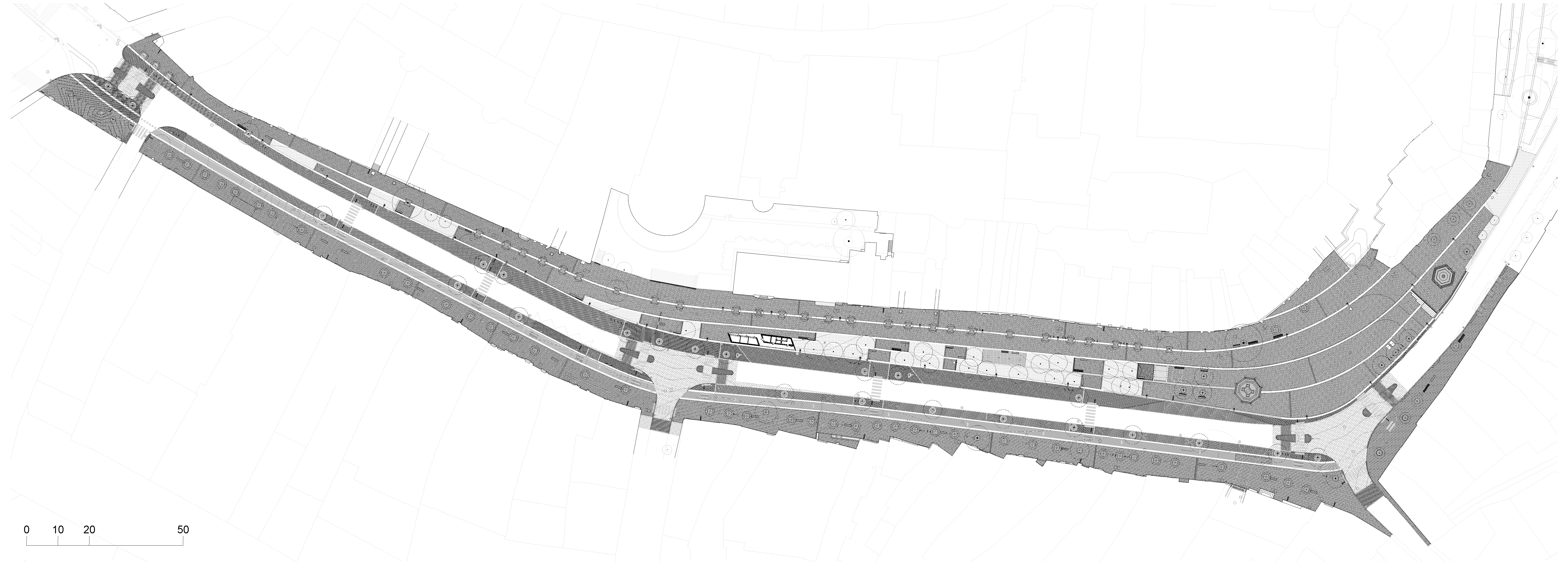 Dynamika štvrte spočíva v meniacom sa priereze ulice a vo variácii priestorových vzťahov pozdĺž celého kilometrového okruhu. “Dichotómia pozdĺžnej dynamiky a prierezovej rozmanitosti je pre nás najdôležitejšia hodnota, ktorú sme chceli posilniť v našom návrhu. Kľúčovým momentom konceptu je vnímanie identity a možnosť identifikácie miesta v ktorejkoľvek jeho časti.,” opisujú návrh autori. Koncept je založený aj na rešpektovaní fasád historických budov ako dominánt určujúcich priestor. Zásahy spočívajú väčšinou vo vyčistení a otvorení priestoru a pohľadov. Akcentované sú len dôležité body.