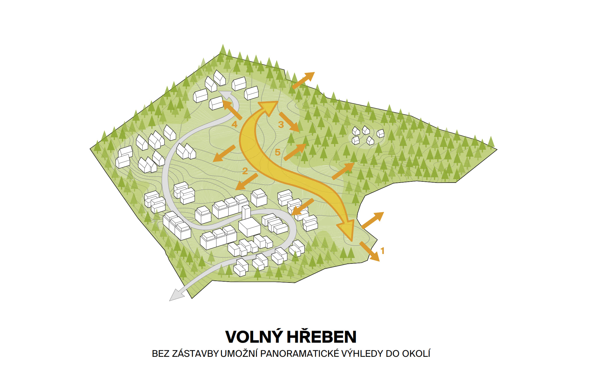Návrh počítá s tím, že současné návrší Šibeničního vrchu a navazujícího hřebene zůstane volné, aby umožnilo 360-ti stupňové výhledy do okolní krajiny. Nová zástavba se bude soustředit do západního svahu tak, aby se minimalizovaly nároky na dopravu a nová zástavba byla co nejblíže Žiaru nad Hronom a ostatní civilizaci. Tímto řešením se sníží dopravní nároky, hluková zátěž a znečištění zbylé části území, kde se předpokládá zejména rekreační potenciál a výstavba experimentální ekologické vesnice.
