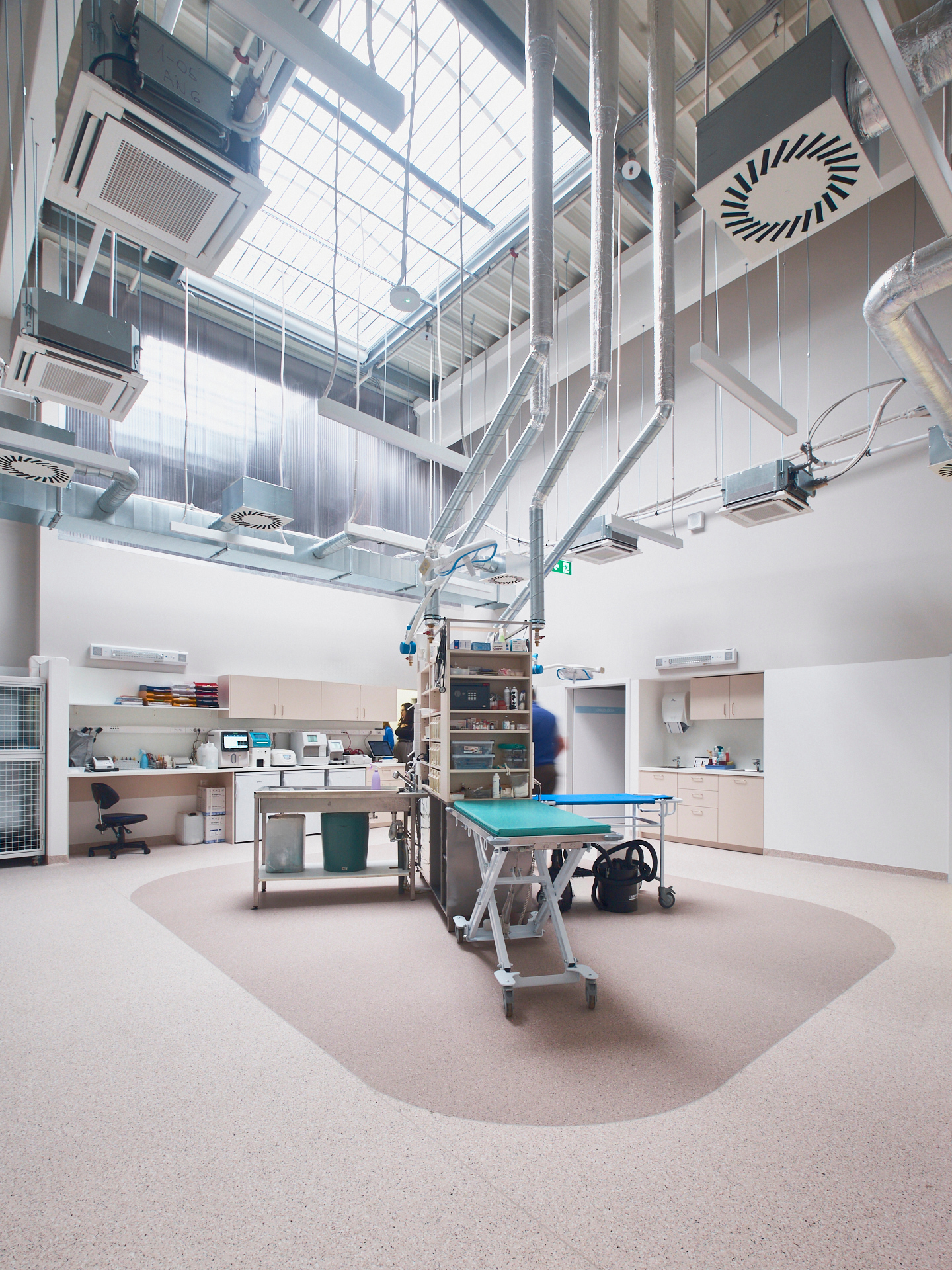 Cieľom konceptu bolo vytvoriť príjemné zdravotnícke prostredie pre klientov a zamestnancov spolu s požadovaným technologickým zázemím, v ktorom dochádza k liečeniu a hospitalizácii domácich zvierat s vysokým štandardom starostlivosti. Dôležité bolo efektívne usporiadanie množstva miestností, ktoré na seba nadväzujú v jasnej hierarchii nemocničnej veterinárnej prevádzky pri požadovanej kapacite. Ukázalo sa, že rozdelenie dispozície na tri základné zóny je logickým vyústením prevádzkových potrieb.
