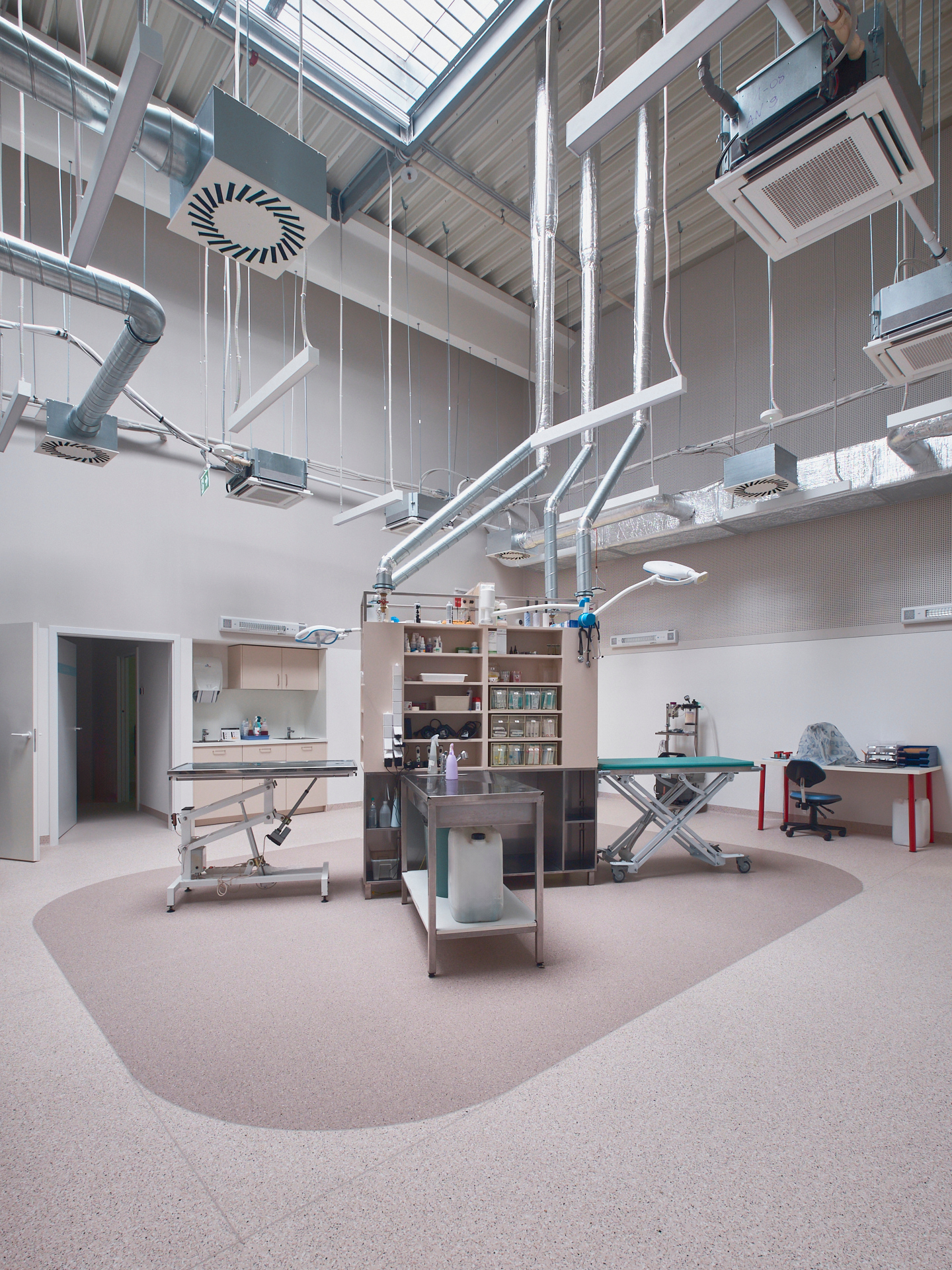 Stavba veterinárnej nemocnice je sadrokartónovým vstavkom v obchodnom centre Danubia v bratislavskej Petržalke. Na začiatku návrhu stál holopriestor obdĺžnikového tvaru v zadnej, západnej časti objektu s dvoma susediacimi samostatnými vstupmi z exteriéru. Ten lemuje prístupový chodník a priľahlé parkovisko, čo zabezpečuje dobrý prístup pre klientov. Pôvodný hlavný objekt nákupného centra má nosnú konštrukciu zo železobetónových stĺpov, väzníkov a väzníc, strechu z trapézových plechov a obvodový plášť z pórobetónových panelov. Veľkorysé rozpony pôvodnej stavby tvoria voľnú dispozíciu bez vnútorných stĺpov. Celý priestor pôvodne určený pre obchodnú funkciu je vysoký približne od 6,5 do 7,1 metra, presvetlený len strešnými svetlíkmi. Tento fakt bol jedným zo zásadných východísk pri návrhu nemocnice.