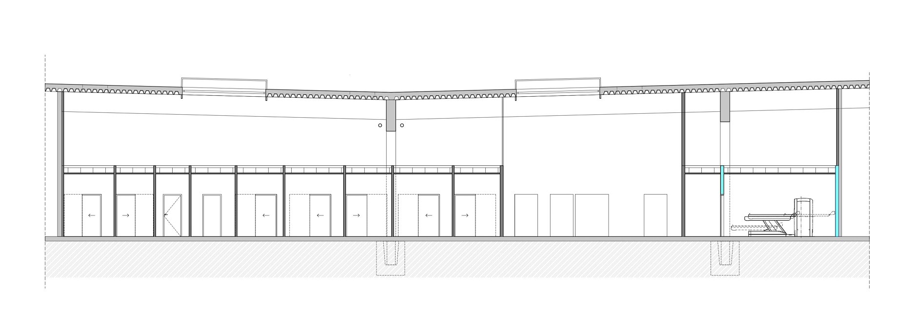 Druhú zónu tvorí zázemie zamestnancov a nemocnice. Ide o priestory technickej miestnosti, šatne žien a mužov so samostatnými hygienickými zariadeniami, spoločná kuchynka, sklad spotrebného materiálu a komunikačná miestnosť. Túto zónu dopĺňajú priestory zasadacej / dennej miestnosti, ktorá navrhovaným oknom disponuje aj denným svetlom (návrh okna v západnej časti fasády) a kancelárie v južnom rohu nájomného priestoru.