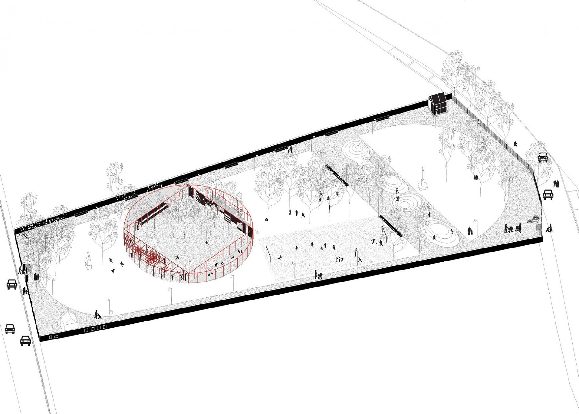 Komisia sa po diskusii zhodla, že návrh svojou mierkou a charakterom nezodpovedá očakávaniam mesta. Riešenie iba okrajovo pracuje s pietnym charakterom miesta. Autori riešili viac architektonickú kvalitu centrálneho objektu, než celkový krajinný ráz. Komisia ale ocenila architektonické kvality návrhu, ktoré umožňujú pestré využitie pre deti a mládež.