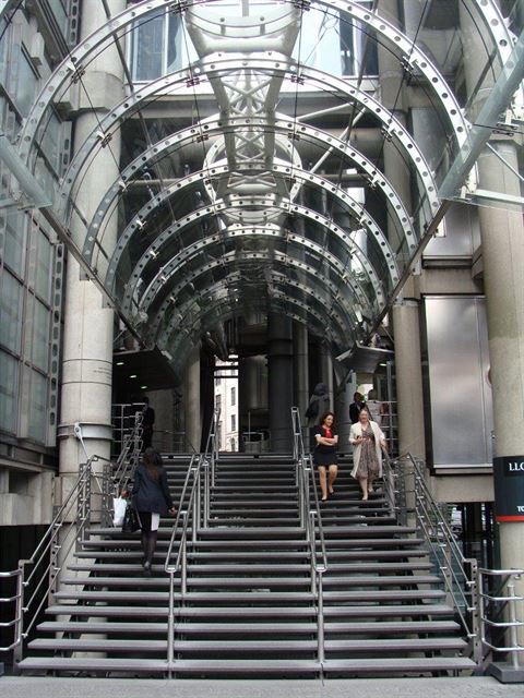Ale první zastavení věnujeme stavbě, která už má nějaký rok existence za sebou, kdysi však byla milníkem ve vývoji moderní architektury a stala se jednou z ikon stylu, jemuž se říká high-tech. Tou budovou je mrakodrap Lloydovy pojišťovny, tedy ctihodné instituce, u níž by člověk neočekával, že si nechá postavit takovou neotřelou budovu.