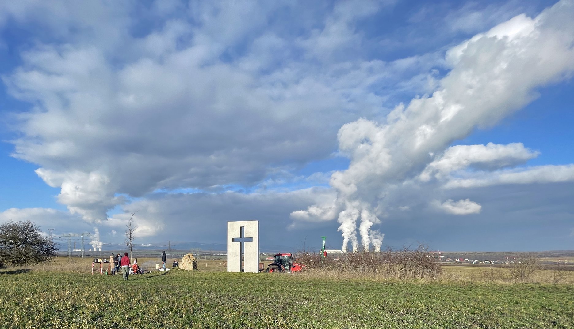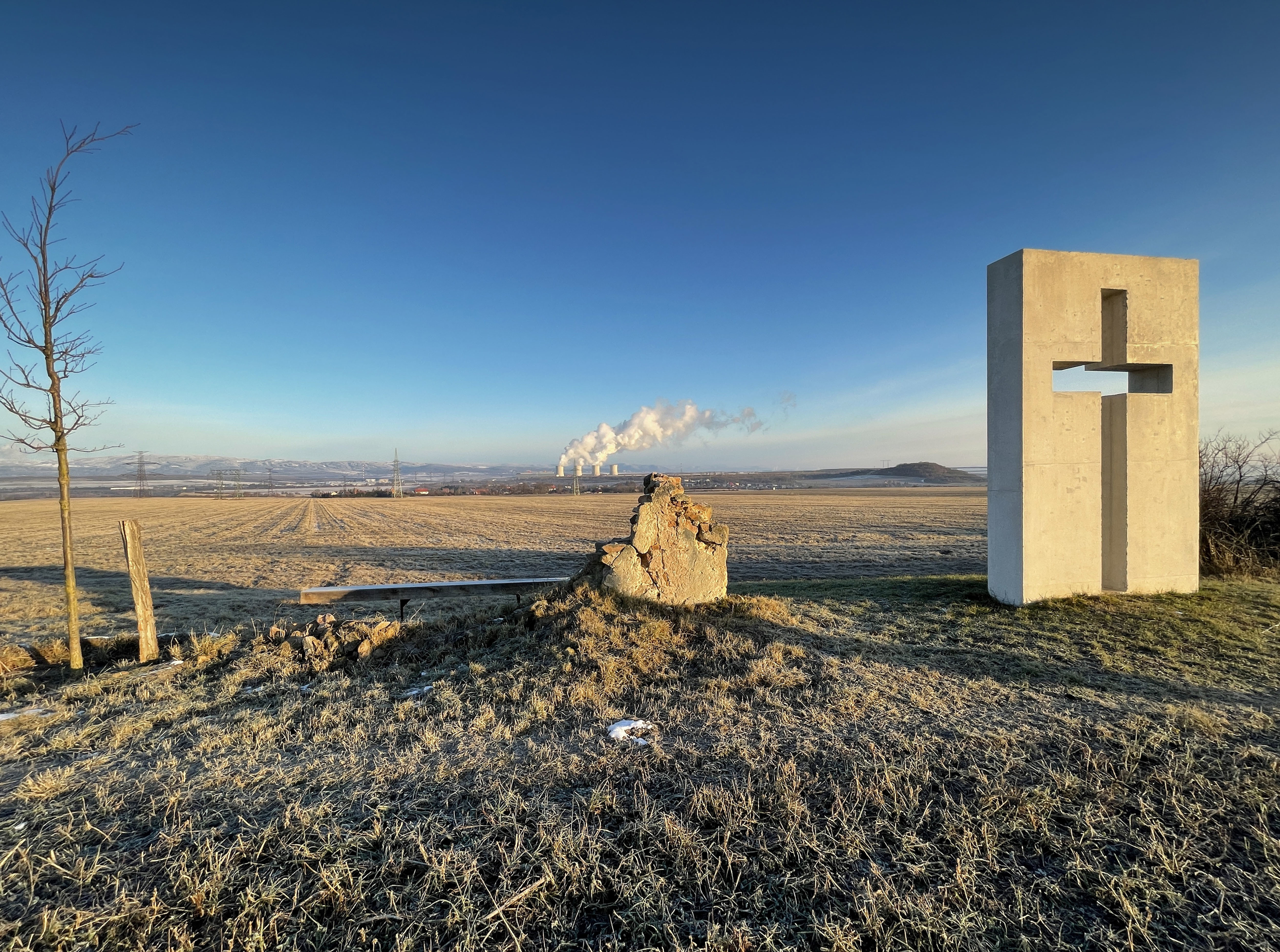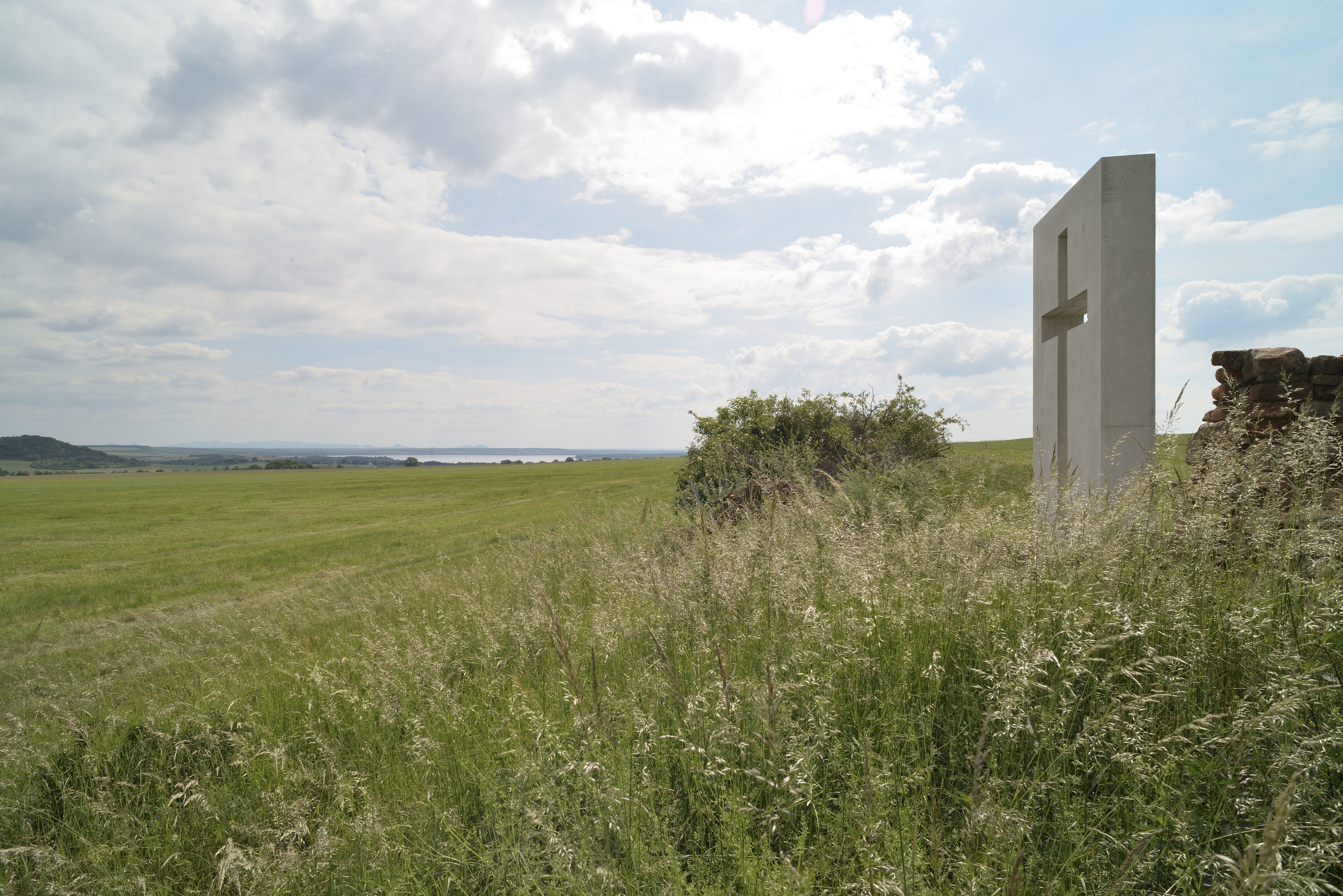 V priemyselnej krajine severných Čiech, v blízkosti vodnej nádrže Tušimice a elektrárne Nechranice vyrástla z iniciatívy miestnych drobná sakrálna stavba. Klasická typológia je v tomto prípade abstrahovaná do podoby elementárneho solitéru v krajine. Hrušková aleja vedúca k monolitickej doske s výrezom v tvare kríža. Nič viac netreba.