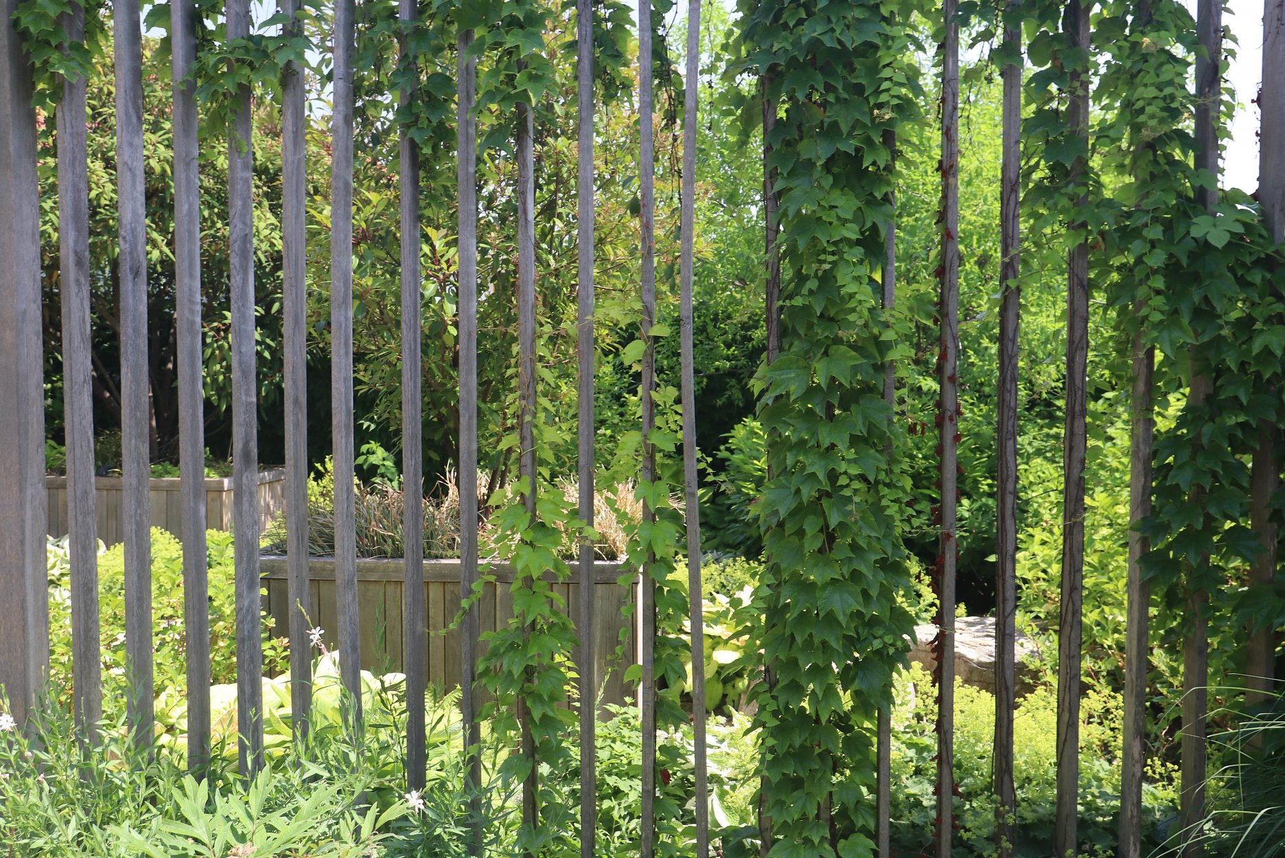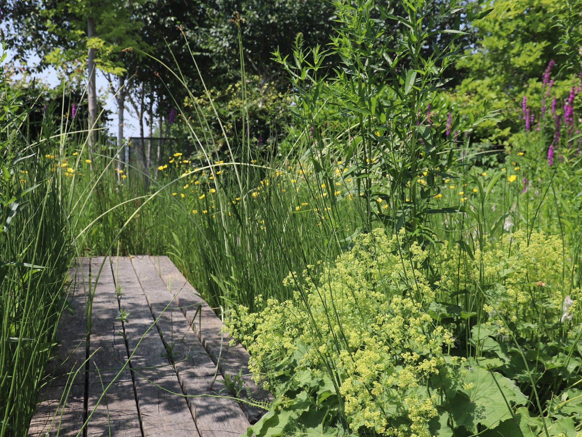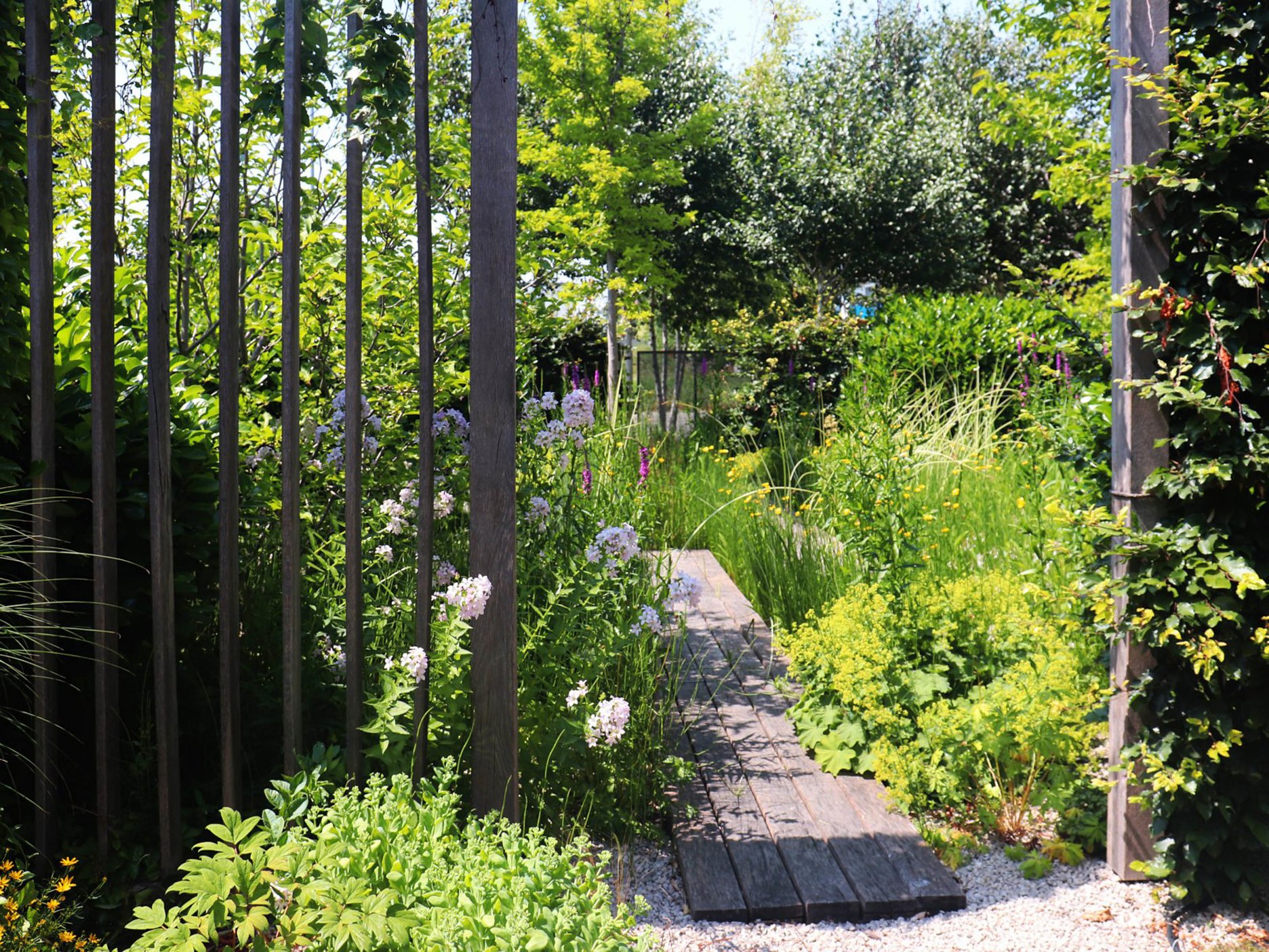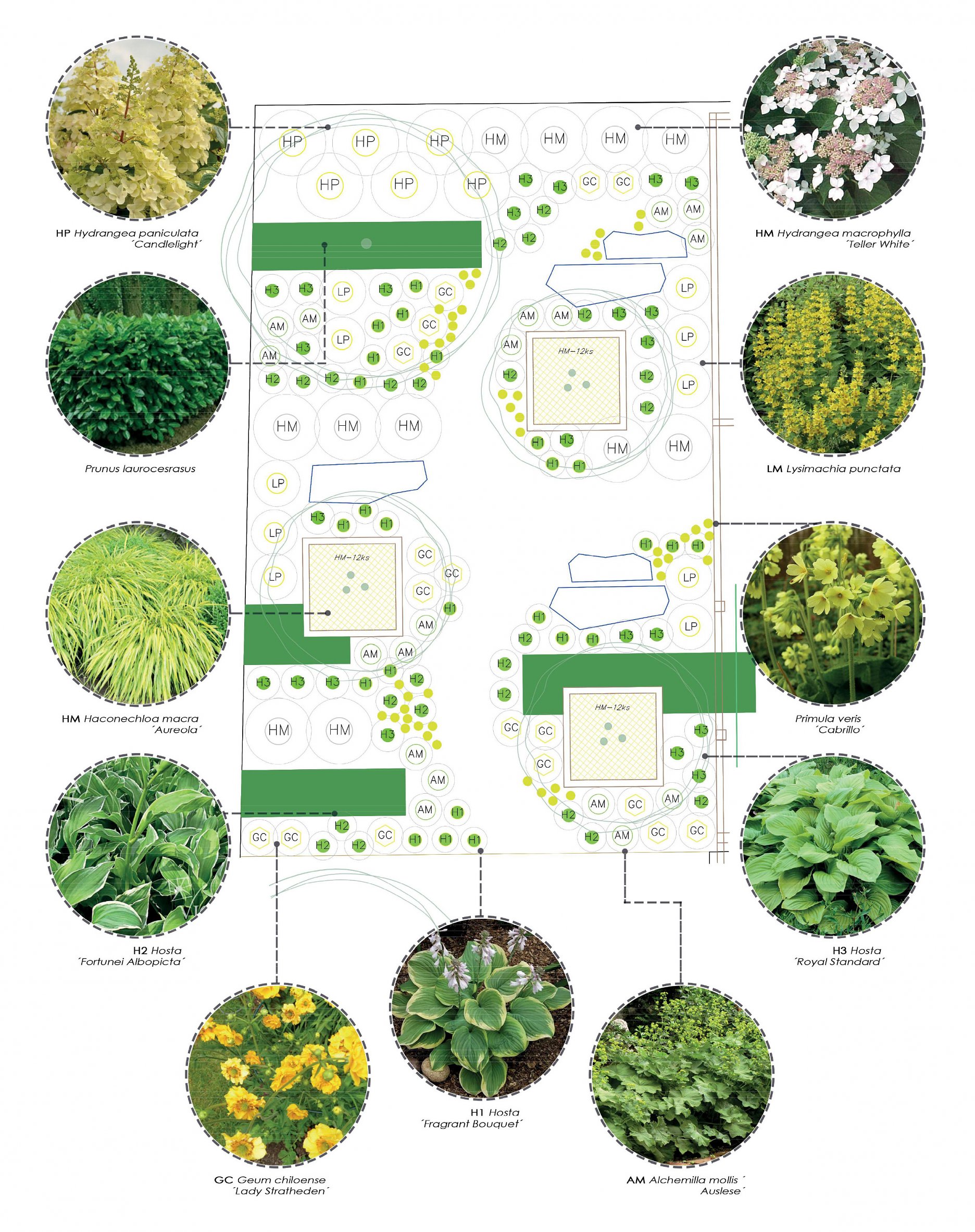 Malá záhrada v satelitnej zástavbe pri Bratislave mala splniť náročné požiadavky mladého investora. Záhrada sa uzatvára do seba, vytvára vlastný vnútorný mikrokozmos členený na menšie rozmanité celky. Koncept využíva vnútorného členenia, neprehľadnosti, k optickej ilúzii - vizuálnemu zväčšeniu malého priestoru. Pracuje s princípom "záhradných miestností“ s efektívnym využitím miesta a vytvorením funkčných zón. Riešenie reflektuje aj zlepšenie mikroklímy (veterné a suché stanovište) a manažment dažďovej vody. V záhrade našla miesto aj malá mokraď, výrazné zastúpenie stromov poskytuje tieň, zlepšuje mikroklímu a spolu s rôznymi zástenami pôsobia ako malé vetrolamy.