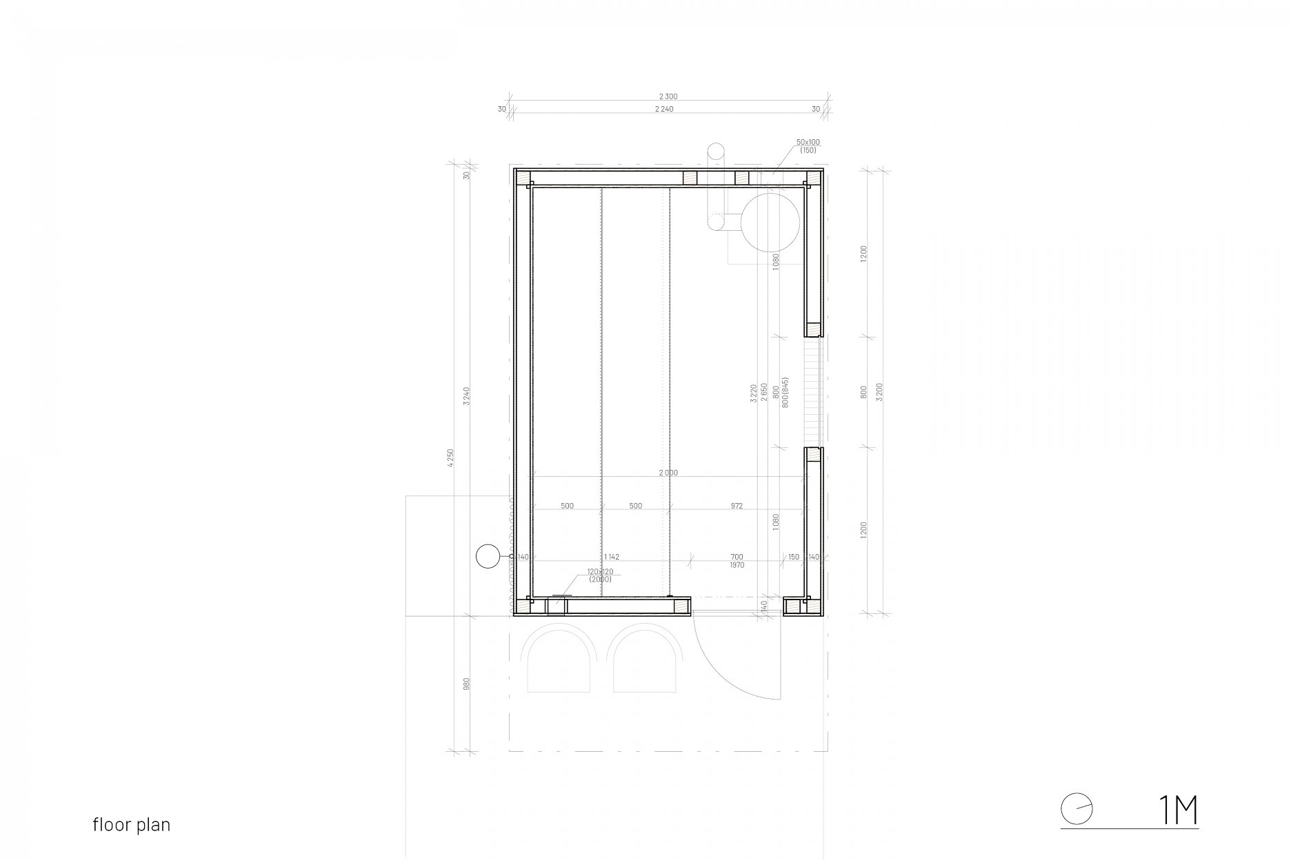 Sauna má půdorysné rozměry 2x3 m a světlou výšku 2 m. V interiéru jsou ve dvou výškových úrovních umístěny 3 m dlouhé, dřevěné lavice a maximální kapacita je 4 až 6 osob. Venku je sauna osvětlena žárovkou zapuštěnou do dřevěného pláště sauny, v interiéru je pak osvětlena pomocí stmívatelného LED pásku umístěného pod spodní lavicí.