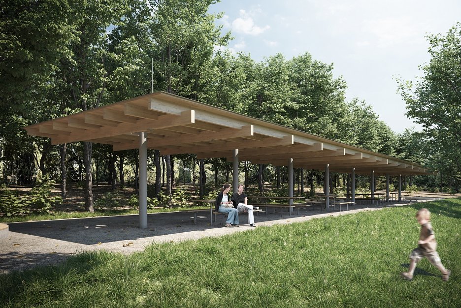 Nový altán bude umiestnený na mieste pôvodných prístreškov, a rešpektuje urbanistické rozloženie. Architekti z ateliéru Bakyta architekts navrhli konštrukciu tenkých stĺpov, ktoré nesú zavesené drevené prestrešenie, vďaka čomu bude priestor presvetlenejší a bezpečnejší s otvorenejšími priehľadmi, aby bol altánok funkčný, no pritom nezakrýval to najdôležitejšie, pohľad cezeň priamo do lesa a na lúku. Odvodnenie strechy altánu je riešené spádovaním strešnej roviny v priečnom smere smerom k lesu.