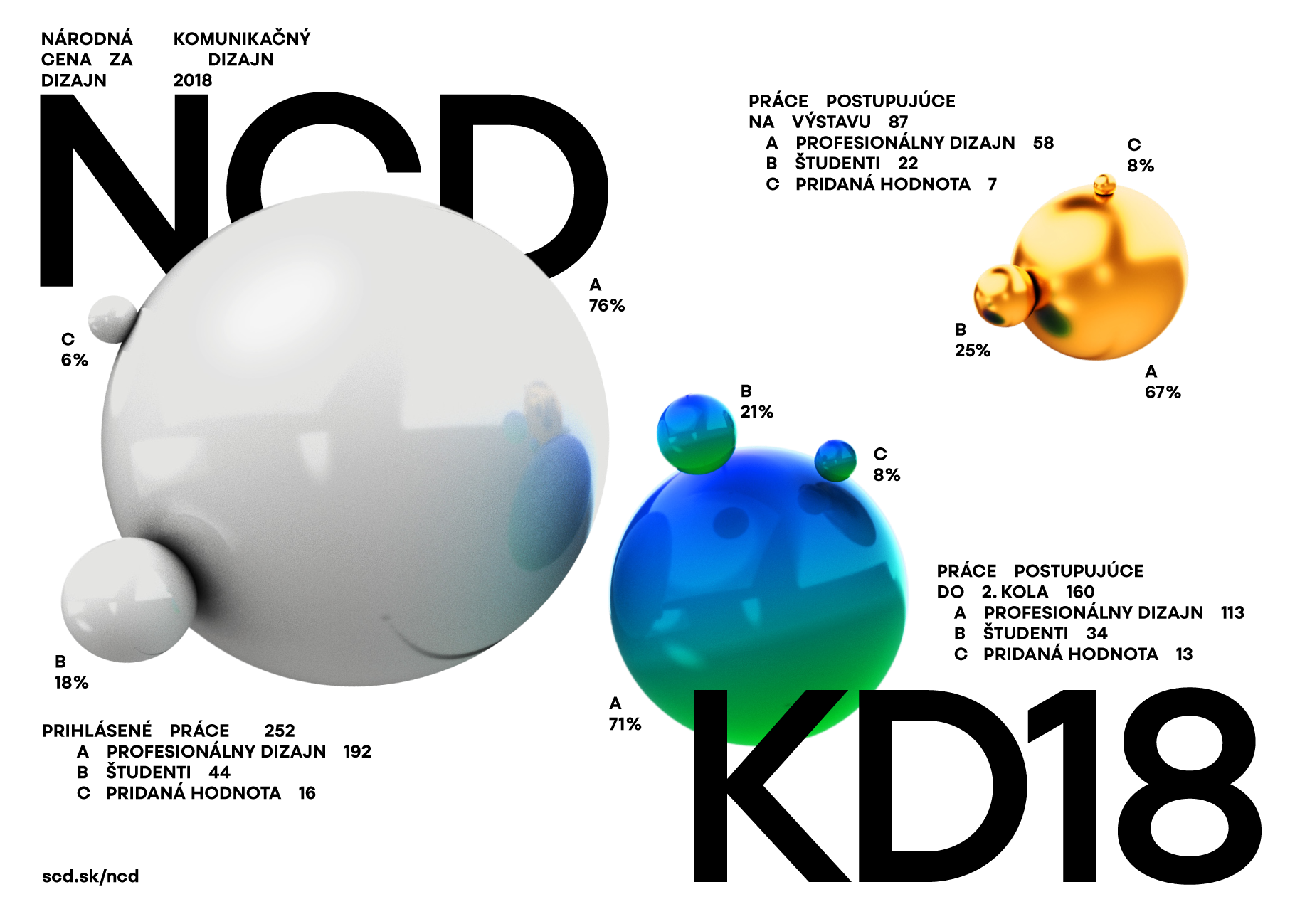Národnú cenu za dizajn (NCD) vyhlasujú Slovenské centrum dizajnu (SCD) a Ministerstvo kultúry Slovenskej republiky. V roku 2018 ide o 15. ročník, ktorý je zameraný na komunikačný dizajn, a do ktorého sa prihlásilo 252 prác. „Tento rok sme opäť potešení záujmom dizajnérok a dizajnérov i klientov o účasť v súťaži. Myslím, že je spôsobený aj tým, že sa stotožňujú s myšlienkou, že nejde iba o súťaž, ale hlavným zámerom je konfrontácia na výstave a možnosť propagovať svoju prácu pred verejnosťou. Kolektívna výstava aktuálnej tvorby takého rozsahu ako NCD je totiž pozoruhodnou výročnou udalosťou,“ hovorí riaditeľka SCD Mária Rišková.