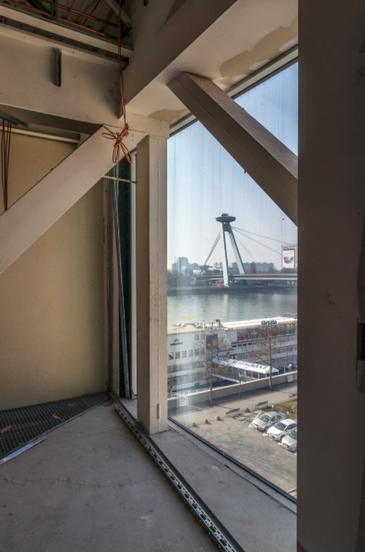 Dve nové okná v štítoch Premostenia majú niekoľko dôvodov, ktoré súvisia nielen s požiadavkou pracovať s Dedečkovou architektúrou, ale aj s prevádzkovým komfortom. Koncepčne odkazujú na pôvodný zámer širšieho záberu areálu - jeho súčasťou bolo dlhšie Premostenie, malo končiť až na rohu Riečnej ulice. Takže ten stav, aký poznáme, je len fragmentom jeho zamýšľanej figúry. Preto tie štíty. Umiestneným okien sa potvrdila definitíva Premostenia, je to vlastne pocta jeho samostatnosti.