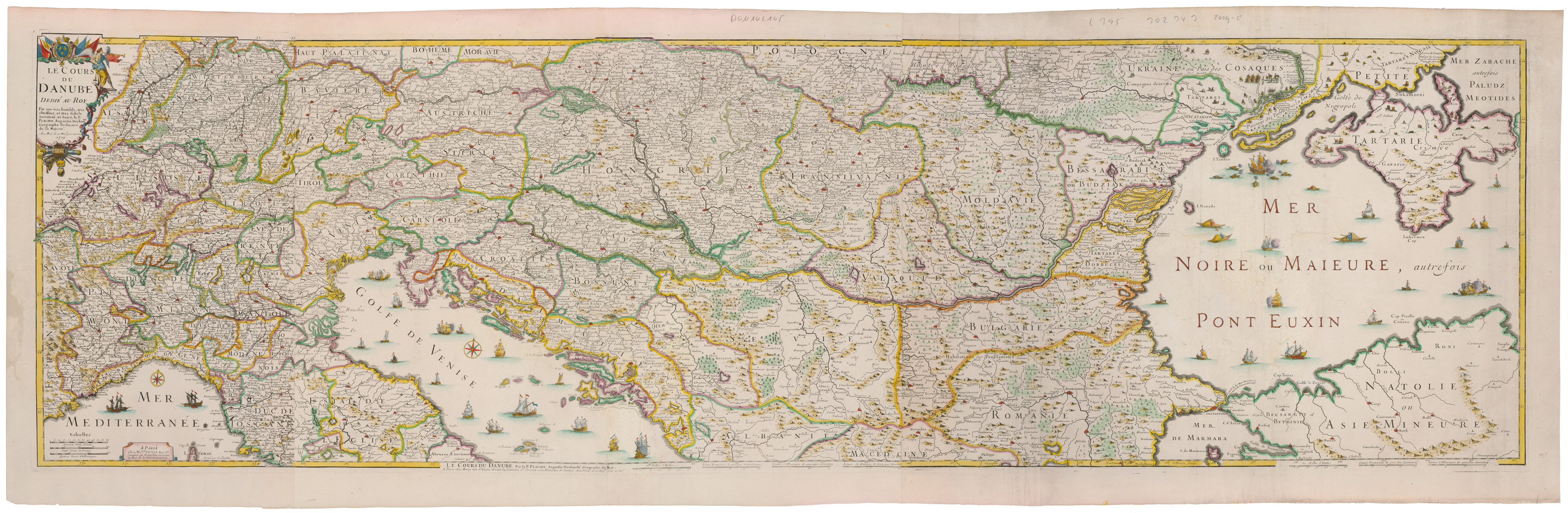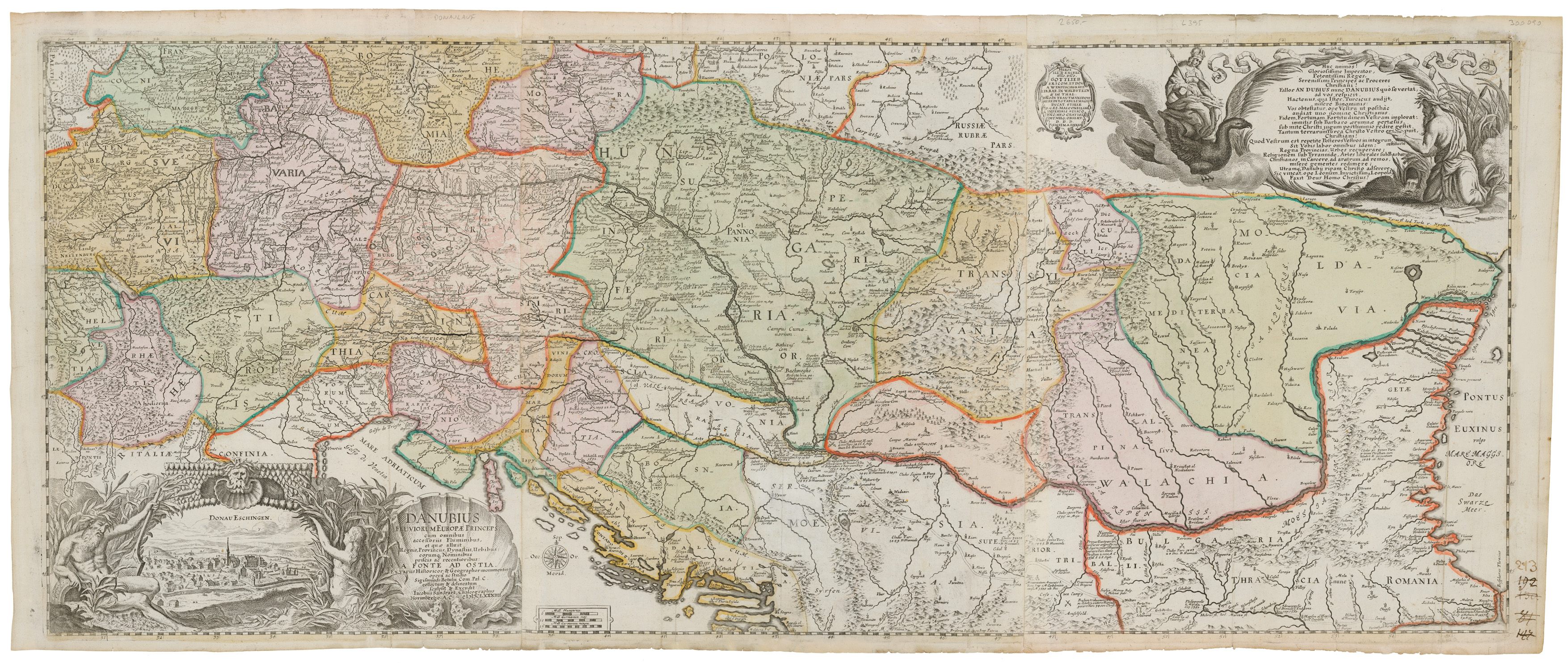 Jedinečným materiálom na ilustráciu tejto témy sú mapy povodia Dunaja vytvárané od 17. storočia s čoraz väčšou presnosťou a zároveň s množstvom dôležitých vojensko-politických údajov. Na Birkenovej mape sú napríklad uvádzané aj lokality a dátumy dôležitých bitiek. Dielo významného kartografa spracoval a vo viacerých vydaniach publikoval významný norimberský rytec, obchodník s umením a nakladateľ Jacob von Sandrart. Ako ukazuje druhá mapa záujem o geografiu povodia najväčšej európskej rieky prekračoval hranice nemecky hovoriaceho prostredia a predstavuje doklad viacerých parížskych vydaní. Obe mapy s neodmysliteľným kolorovaním zároveň predstavujú aj významné doklady „estetizácie“ dobovej kartografickej produkcie.