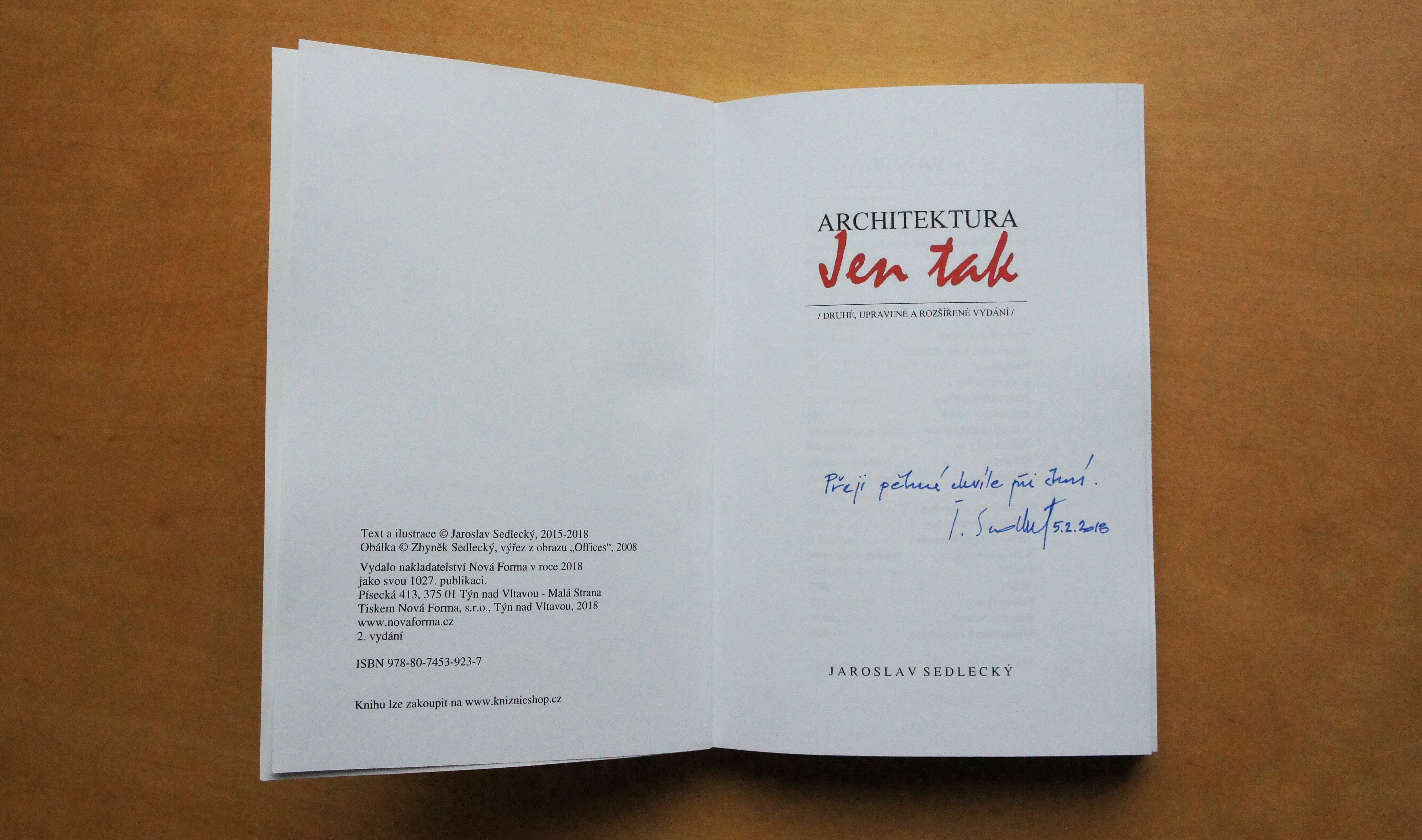V novembri 2015 vyšla v nakladateľstve Nová Forma knižka s názvom ARCHITEKTURA A ARCHITEKTI JEN TAK. Jej autor je bývalý ostravský hlavný architekt z rokov 1999-2008. Autor pri zostavovaní poznámok písaných pôvodne len pre seba myslel viac na publikum architektúry, než na jej tvorcov a svojich kolegov - architektov. Jeho zámeru odpovedá aj odľahčený tón a zrozumiteľný jazyk, akým je kniha písaná.