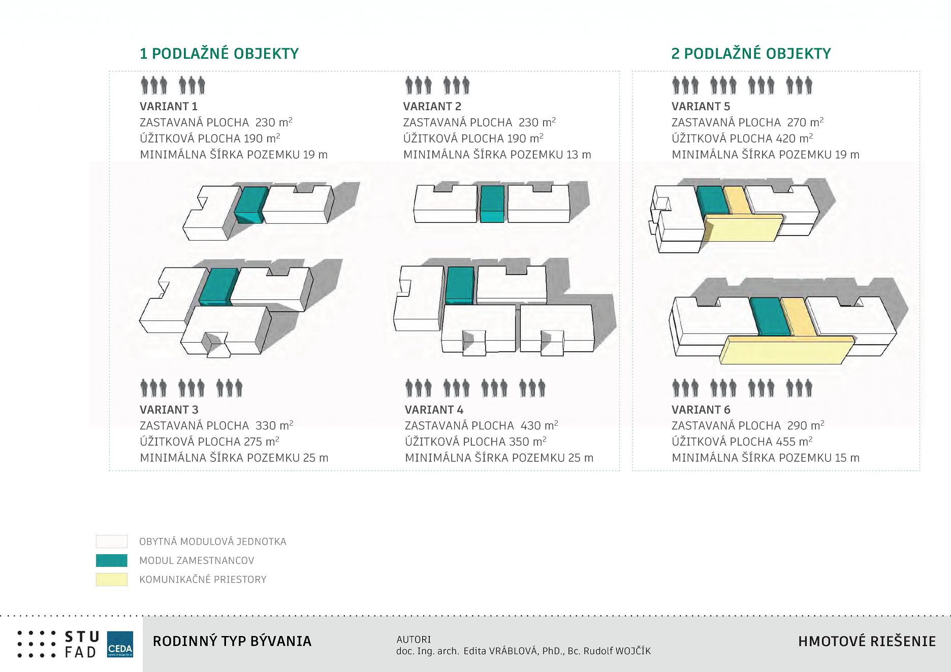 V katalógu štúdií “Zariadenia poskytujúce pobytové sociálne služby s kapacitou do 12 miest v rámci Plánu obnovy a odolnosti SR“, vypracovanom na pôde FAD STU bolo vo výsledku navrhnutých 9 typov štúdií (A - I).