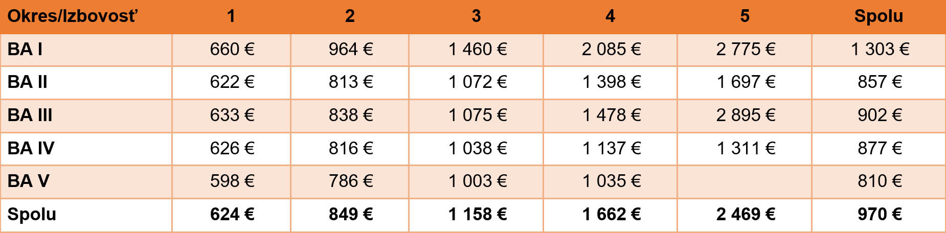 Priemerný dvojizbový byt si bolo možné v Bratislave prenajať za 849 € aj s prislúchajúcimi platbami za energie. Rast nájomného je stále podporený dopytom po tejto forme bývania keď splátka priemerného 50 metrového bytu (pri sadzbe 4,5 %) je o 12,9 % vyššia v porovnaní s nájmom obdobného bytu. Do nájmu sa však aj naďalej postupne premietajú zvýšené finančné náklady po refixovaní hypoték.