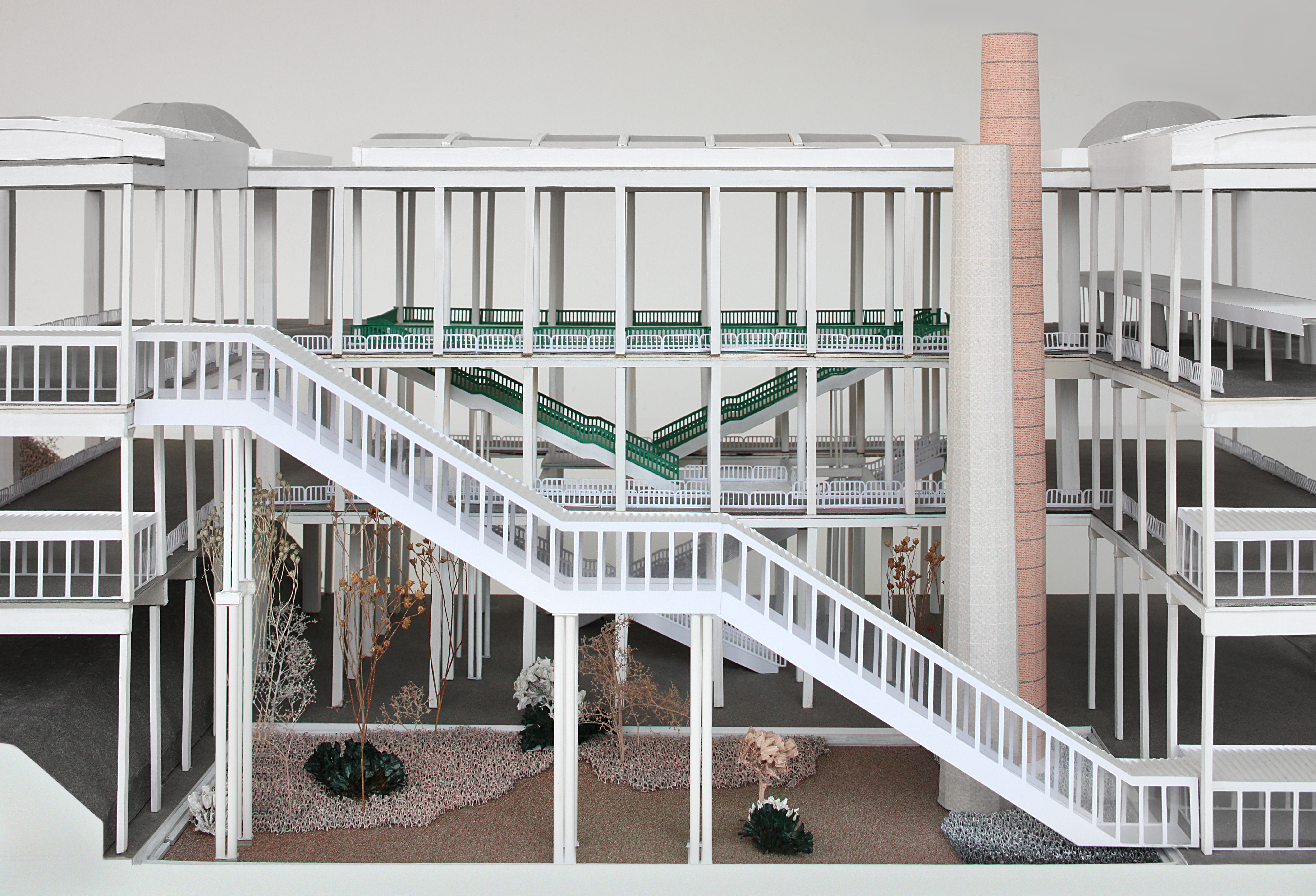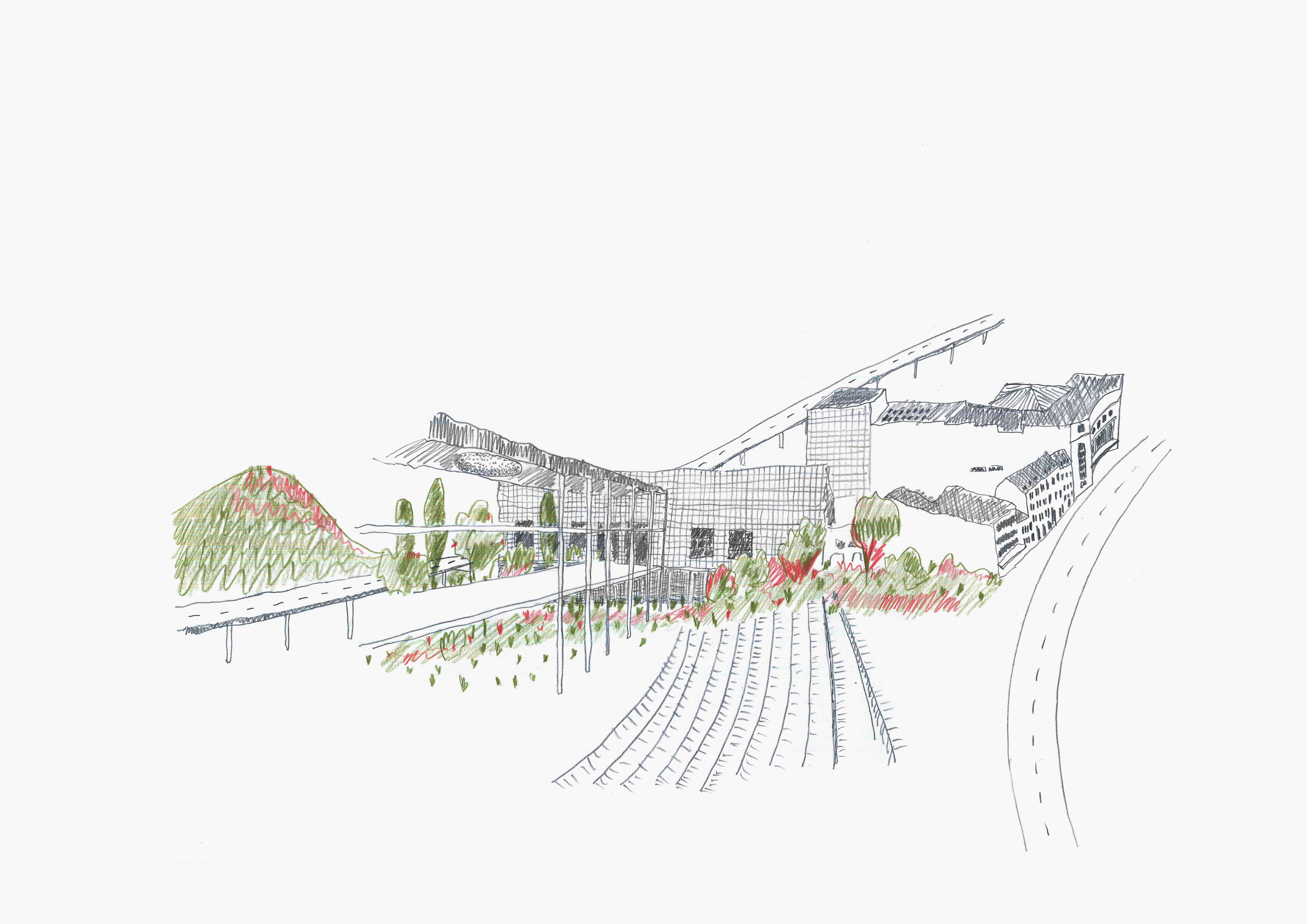 Podstatou návrhu nebolo realizovať novú dominantnú vrstvu, ale znovu pomenovať hodnoty jednotlivých častí areálu a podľa toho rozhodnúť, čo zachovať, čo odstrániť a čo zmeniť. Pôvodné zadanie počítalo s nahradením centrálnej haly novou nízkoenergetickou budovou. Víťazný súťažný návrh však zohľadnil budúce nároky na realizáciu a údržbu. Architekti preto zvolili opačný prístup. Asanovali časti fasád centrálnej haly a vytvorili krytý exteriérový priestor s terasami a priechodmi, ktoré prepájajú jednotlivé úrovne aj budovu s okolím. Nový verejný priestor a krajinné úpravy „vstupujú“ do budovy. Súčasťou projektu je výrazné zníženie podielu spevnených plôch a premena vonkajších priestorov na súvislejší park, vrátane úprav násypu, na ktorom budova stojí.