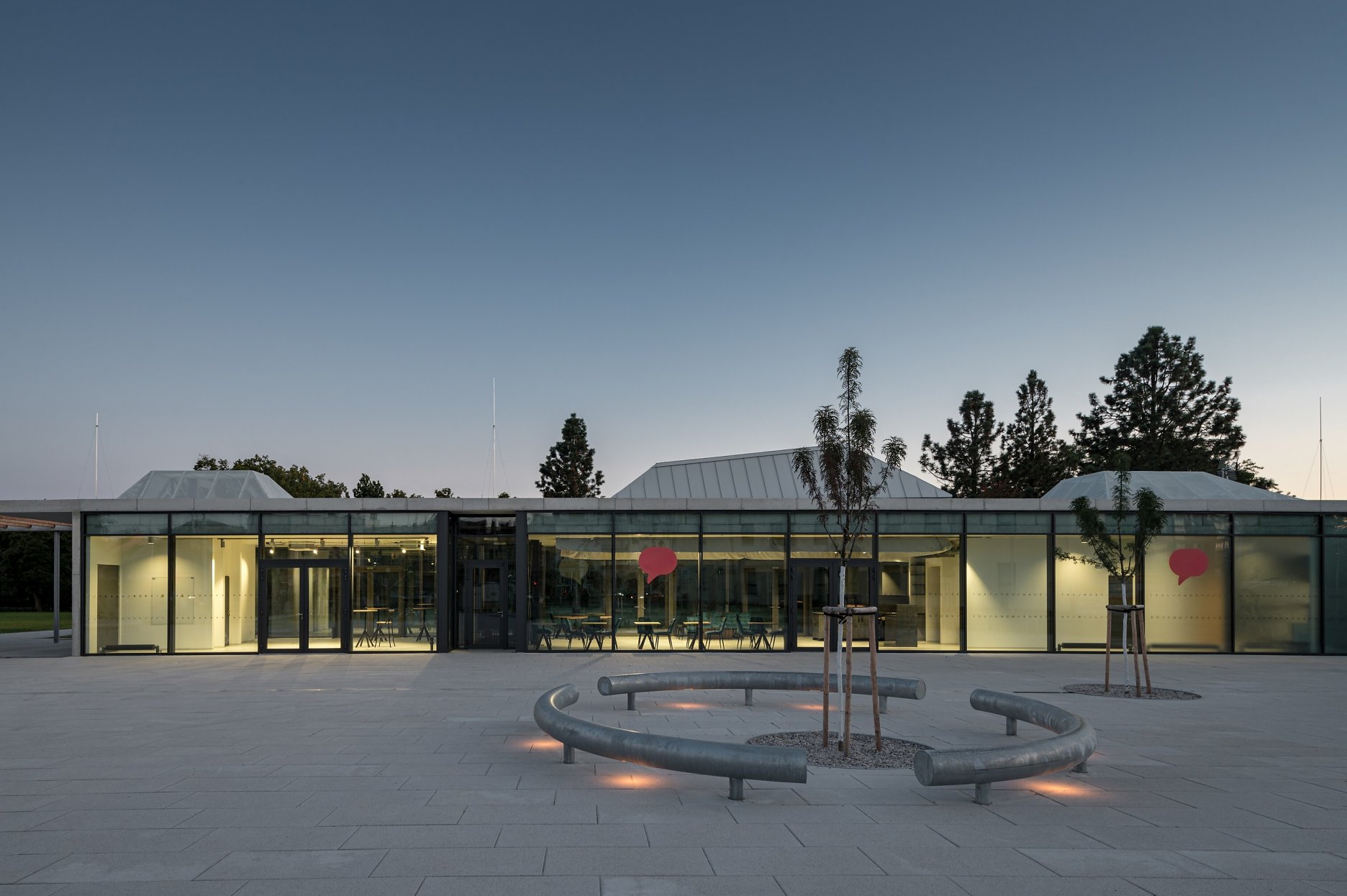„Sympatický a střídmý objem oddělující město od parku a zároveň představující jasně čitelný vstup do zelene, který v sobě pojímá více funkcí. Z urbanistického hlediska představuje zdařilou reakci na roztříštěný kontext za použití minimálních prostředků.“