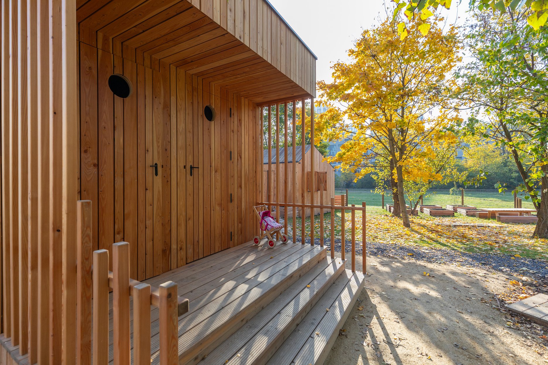 „Tento soubor menších staveb vytváří prostorově podnětné prostředí. Jde o bezpečné místo v městském parku určené ke hře a objevování přírody, ročních období a přírodních živlů.“