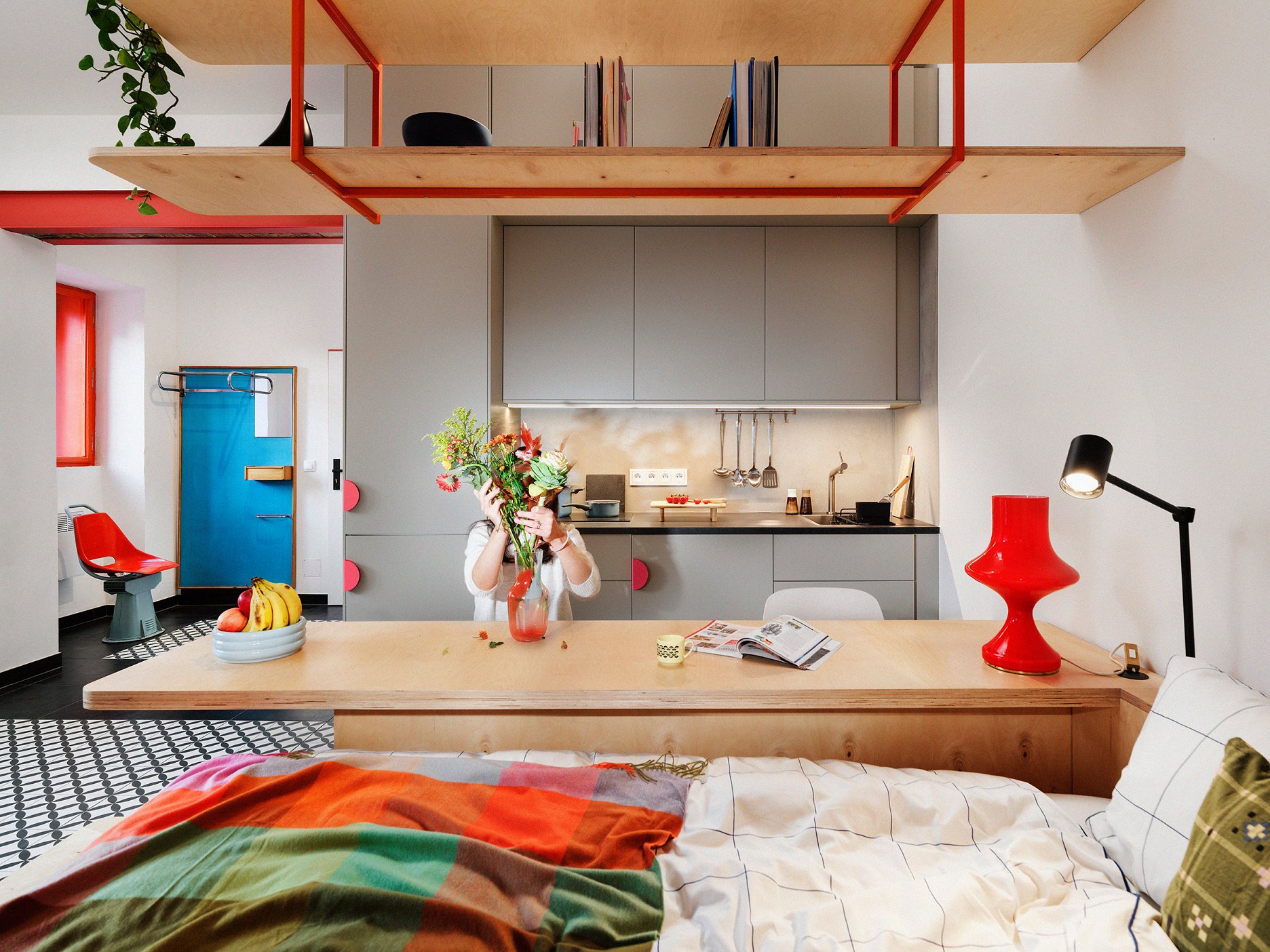 „Přestavba stávajících nevyužitých prostor v přízemí bytového domu na tři jednoduché bytové jednotky dokazují, že i s omezenými prostředky lze vytvořit zajímavé prostory pro bydlení.“