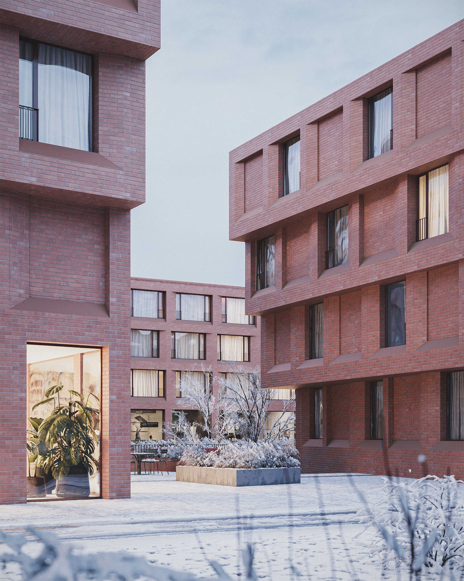 Prírodné materiály budú použité najmä v komunitných priestoroch. Tradičné tehlové prvky a prírodné materiály kombinujú architekti s grafikami lokálnych autorov, rastlinami a neformálnym vybavením.