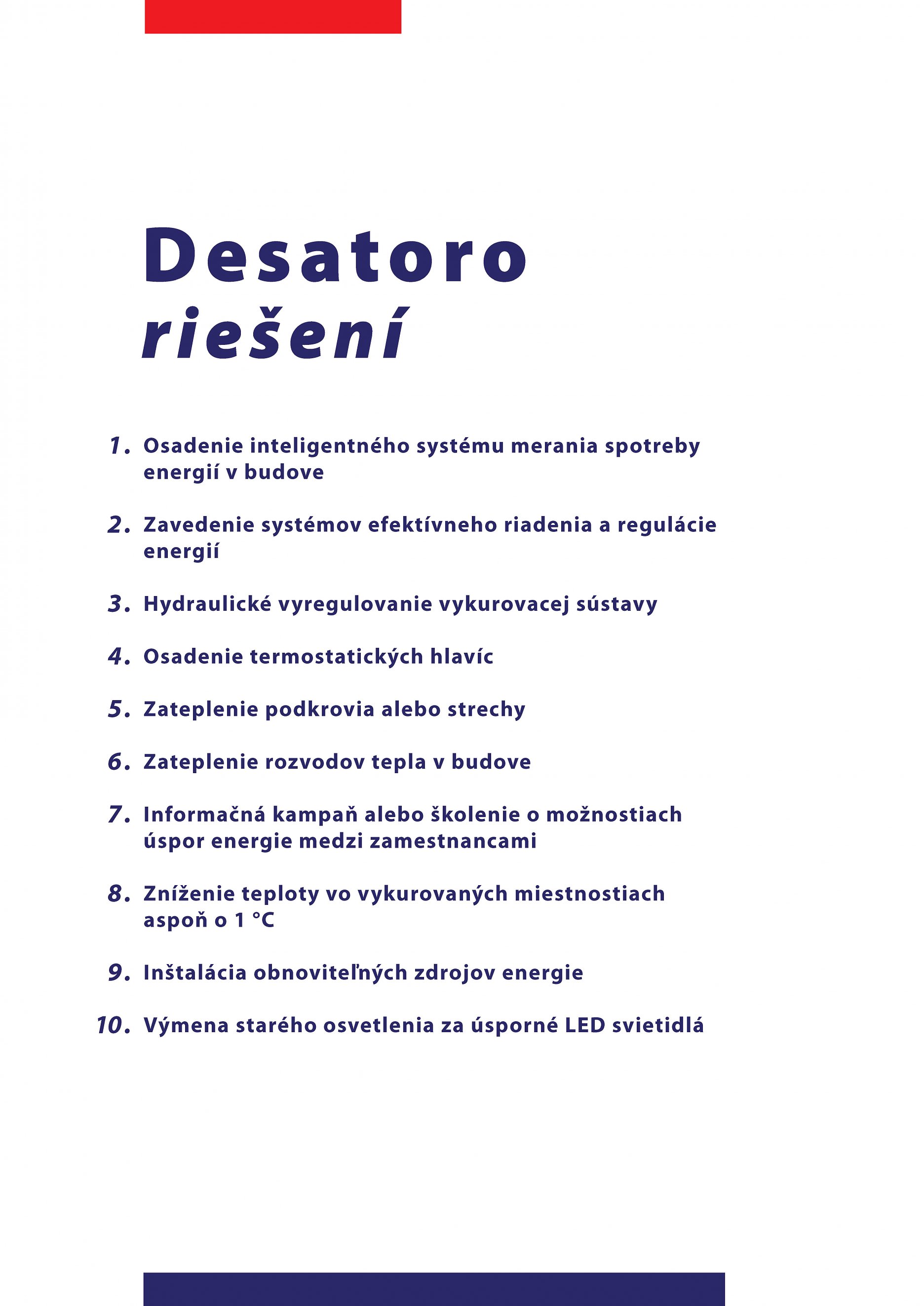 Desať riešení, ktoré majú potenciál znížiť spotrebu energie na vykurovaní verejných budov v rozsahu až do dvadsať percent v skratke: