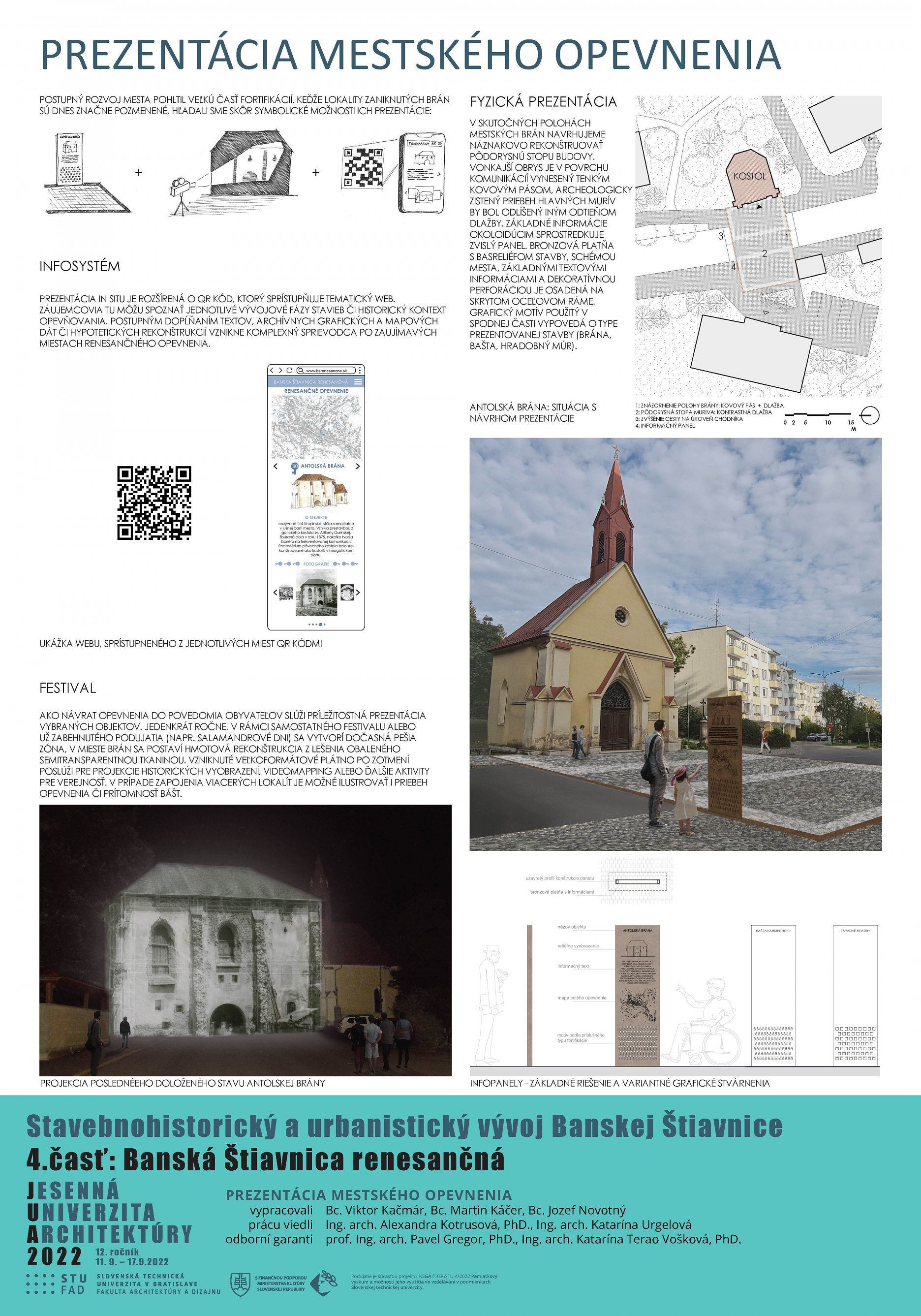 Po štvorročnom výskume stredovekej Banskej Štiavnice sme sa v rámci medzinárodného študentského workshopu Jesenná univerzita architektúry 2022 venovali výskumu novovekého, teda renesančného mesta. V prvej fáze výskumu sme sa zamerali na protiturecké opevnenie, ktoré si mesto systematicky a starostlivo budovalo na základe plánov talianskeho architekta, špecialistu na obranné stavby Pietra Ferrabosca. V Banskej Štiavnici sa napriek likvidácii opevnenia v 18. storočí zachoval dostatok stôp po ňom. Sú však zatiaľ iba málo viditeľné, lebo im chýba vhodná prezentácia a interpretácia v teréne.