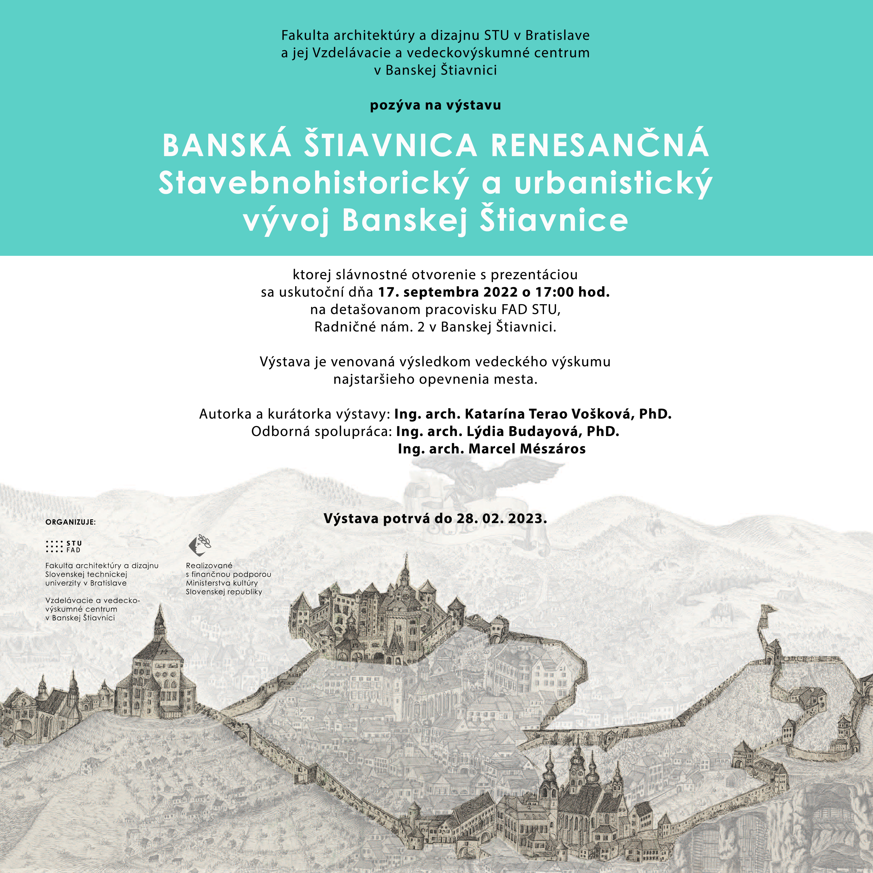 O výsledkoch doterajšieho výskumu na tému „Banská Štiavnica renesančná“ sa môžete dozvedieť viac na výstave s rovnomenným názvom, ktorá je inštalovaná na prízemí Vzdelávacieho a vedeckovýskumného centra v Banskej Štiavnici a potrvá do konca februára 2023. Autorka a kurátorka výstavy Katarína Terao Vošková výstavou o.i. upozorňuje autority mesta a relevantných úradov na nevyhnutnosť architektonickej prezentácie.