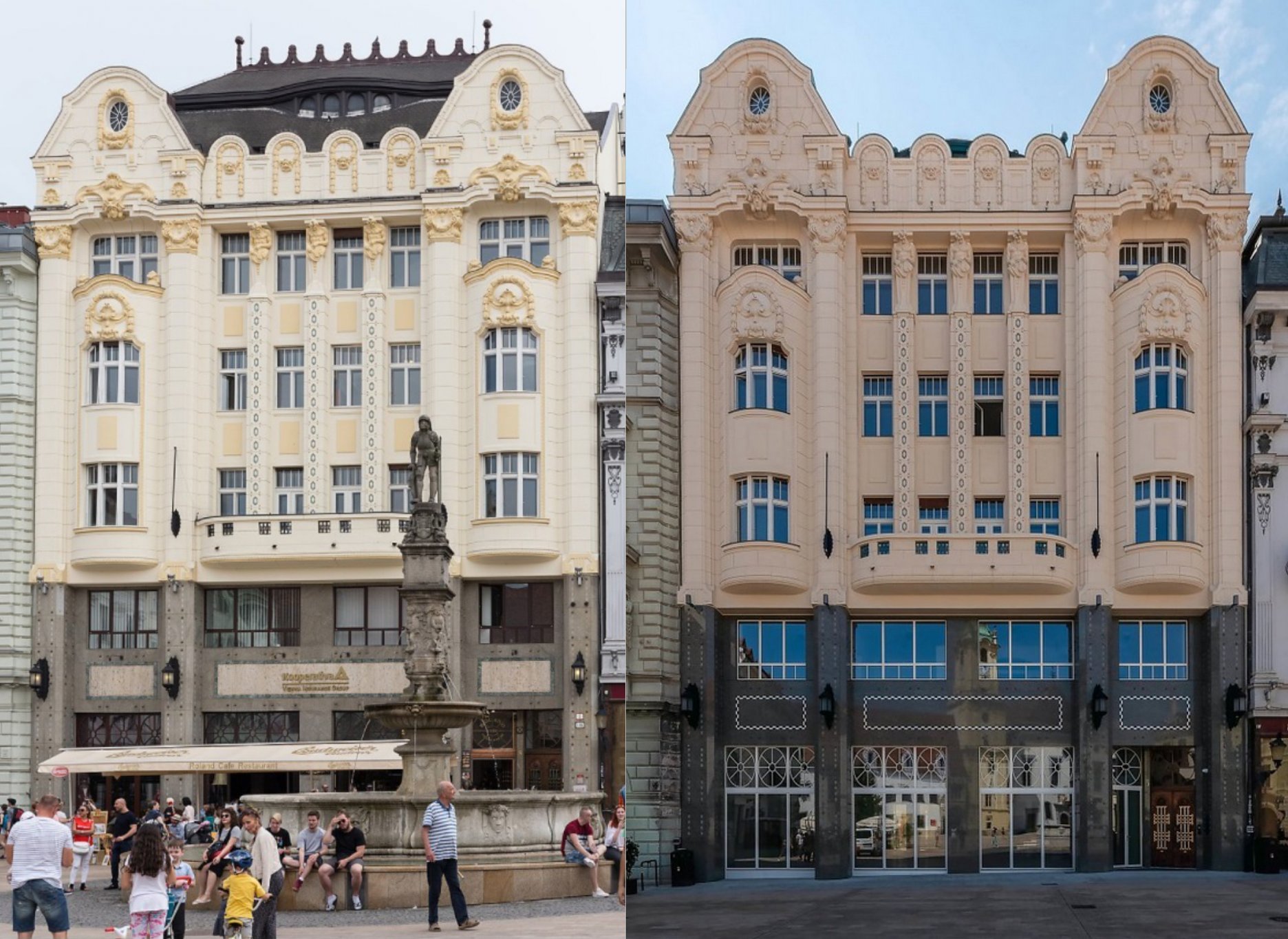 V uplynulom mesiaci sa v odborných médiach o architektúre, časopis ASB č. 226 a na webových stránkach ARCHINFO, objavila reportáž o rekonštrukcii objektu Národnej kultúrnej pamiatky, bývalej Uhorskej eskontnej a zmenárenskej banky na Hlavnom námestí v Bratislave. Objekt je proklamovaný ako dokončená stavba dokumentovaná nielen fotografickou ale i výkresovou dokumentáciou. Pre verejnosť je objekt prístupný za veľmi krátky čas, temer za 30 mesiacov. Operatívnosť investora, odvedená práca projektantov, generálneho dodávateľa stavebných prác ako reštaurované umelecké a výtvarné práce sú na vysokej úrovni zodpovedajúcej súčasnému nadštandardu. Až na jeden, veľmi podstatný moment. Najikonickejší objekt po Starej radnici na Hlavnom námestí je príjímaný verejnosťou rozporuplne, rozpačito, ľahostajne, vyvolávajúci až vášnivé diskusie. Obľúbenej stavbe Bratislavčanov pri ktorej sa zastavil skoro každý domáci i zahraničný turista , nechýba ani história , ba ani sláva. Je to strata šarmu a hlavne mohutný dialóg s obyčajným pasantom, absencia pečate príjemných pocitov, energie a pohody. Nevadila ani skutočnosť, že sa jedná o najmladšiu stavbu v tomto mestskom priestore, má však „iba“ 110 rokov. V čase vzniku sa neprispôsobovala žiadnemu objektu v mierke, výraze, farebnosti, tvarosloví, nebrala ohľad na nikoho. Reprezentovala majiteľa, dobu, životný štýl a všetko to najkvalitnejšie, čo obdobie pred Veľkou vojnou mohlo prostredníctvom secesie mestskému priestoru doniesť. Svojím novátorstvom prispela k dialógu a vrstveníu historických a kultúrnych hodnôt, mestského priestoru námestia, tak ako mladý les prerastie starý a vnuk prerastie starého otca.