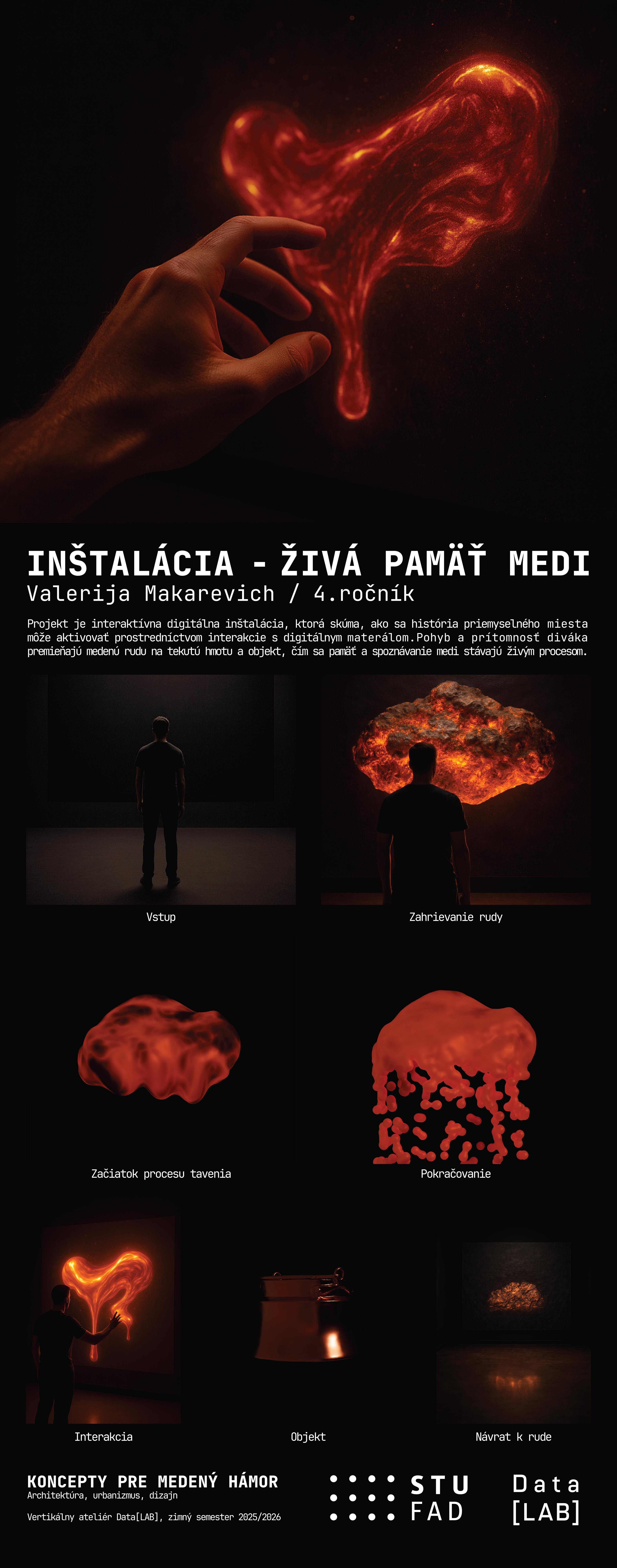 Výstava pod názvom ,,CUPRUM: Ruda v procese“ bola vytvorená v rámci vertikálneho ateliéru Data[LAB] na Fakulte architektúry a dizajnu STU v rámci zimného semestra 2025/2026.