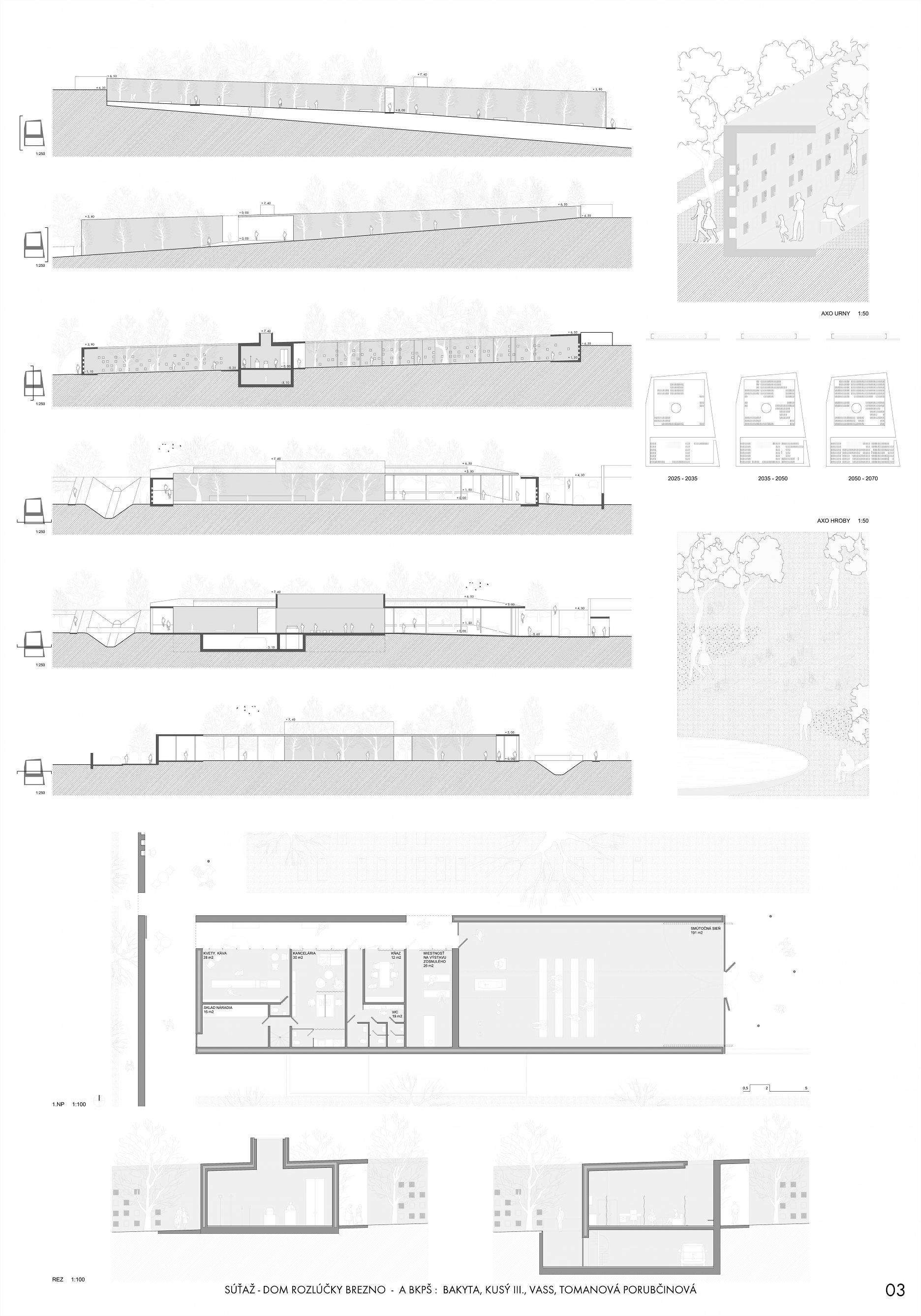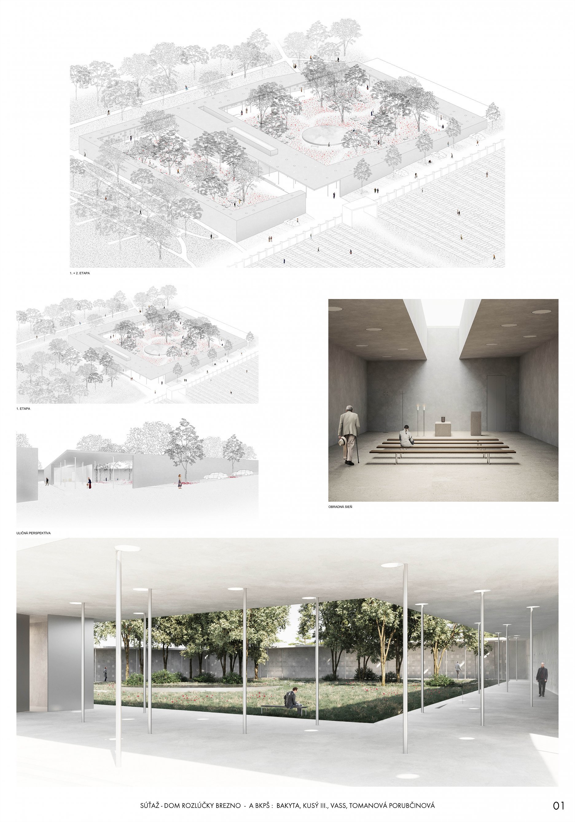 Spomedzi 21 záujemcov vyhodnotila porota ako najlepší návrh kolektívu A B.K.P.Š.: "Dom rozlúčky tu nie je samostatnou stavbou, ktorá púta pozornosť, ale je len akoby časťou domu-plotu. Múr ktorý oddeľuje cintorín od okolia je zároveň kolumbáriom. Jedným z najsilnejších momentov návrhu je atmosféra samostatného sveta vnútorného nádvoria cintorína-parku. Zadanie, ktoré spočívalo vo venovaní rovnakej pozornosti samotnej stavbe Domu rozlúčky a koncepcie pochovávania a hrobových miest je tu splnené jednoduchým a účelným gestom. Porotu presvedčila aj schopnosť autorského kolektívu precizovať v prvom kole nahodenú schému do netriviálneho návrhu v detailnom prevedení. Autori ponúkajú Breznu nielen stavbu Domu rozlúčky, ale zároveň miesto so silnou atmosférou, otvorené pre každého."