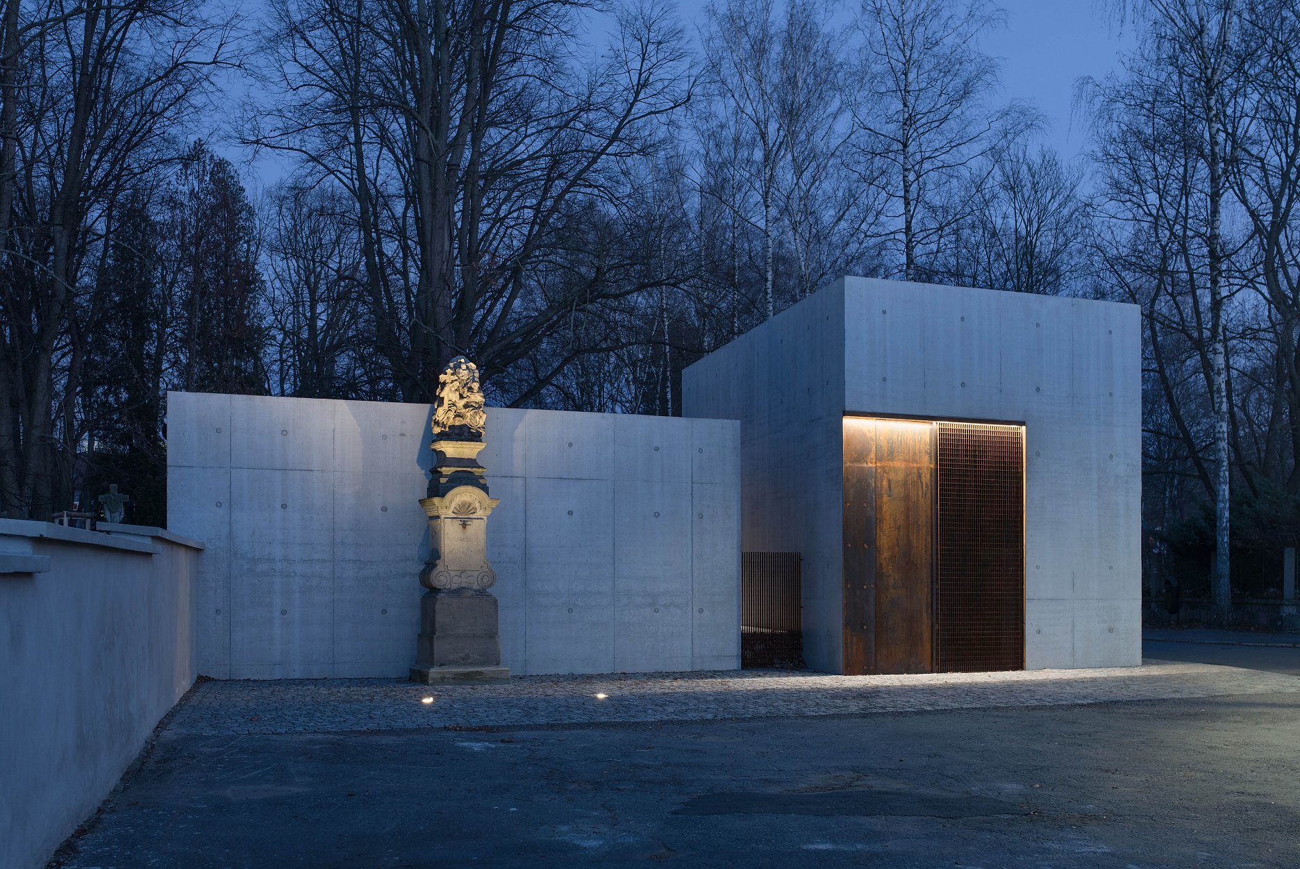 Východočeský Litomyšl je pre priaznivca architektúry miestom hodným návštevy. K výborným stavbám, ktoré vznikli na základe súťaží z verejných zdrojov sa pripojili aj ďalšie zaujímavé objekty. Patrí medzi ne aj realizácia ateliéru Kuba & Pilař architekti - minimalistické zázemie mestského cintorína. Striedma forma dôsledne napĺňa požiadavky na efektívne naplnenie zadania. Súčasne však rozvíja estetickú stránku, akcentuje priestor južného vstupu do cintorína a vytvára pozadie pre umiestnenie pamiatkovo chráneného súsošia.