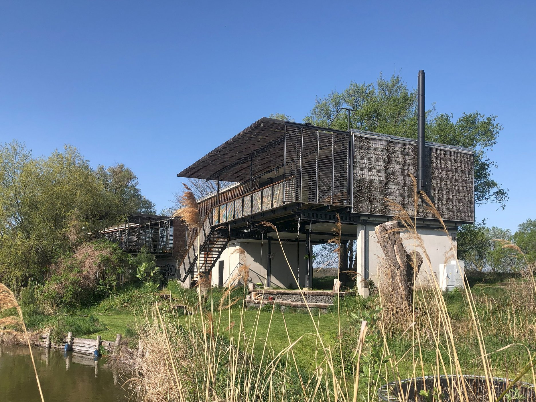 Štyri objekty slobodne uložené v krajine na brehu jazera, bez plotov a bariér voči okoliu aj voči sebe na vzájom, vytvárajú zaujímavú komunitu priestorov a vzťahov.