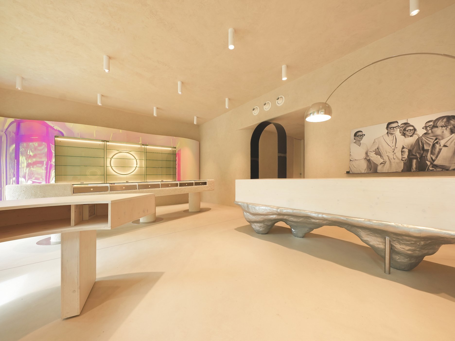 Mimoriadne osobitý prístup ku skladbe materiálu a k usporiadaniu priestoru sa zdá byť dokonalým prostredím pre dizajnérku dioptrických okuliarov a jej klientov.