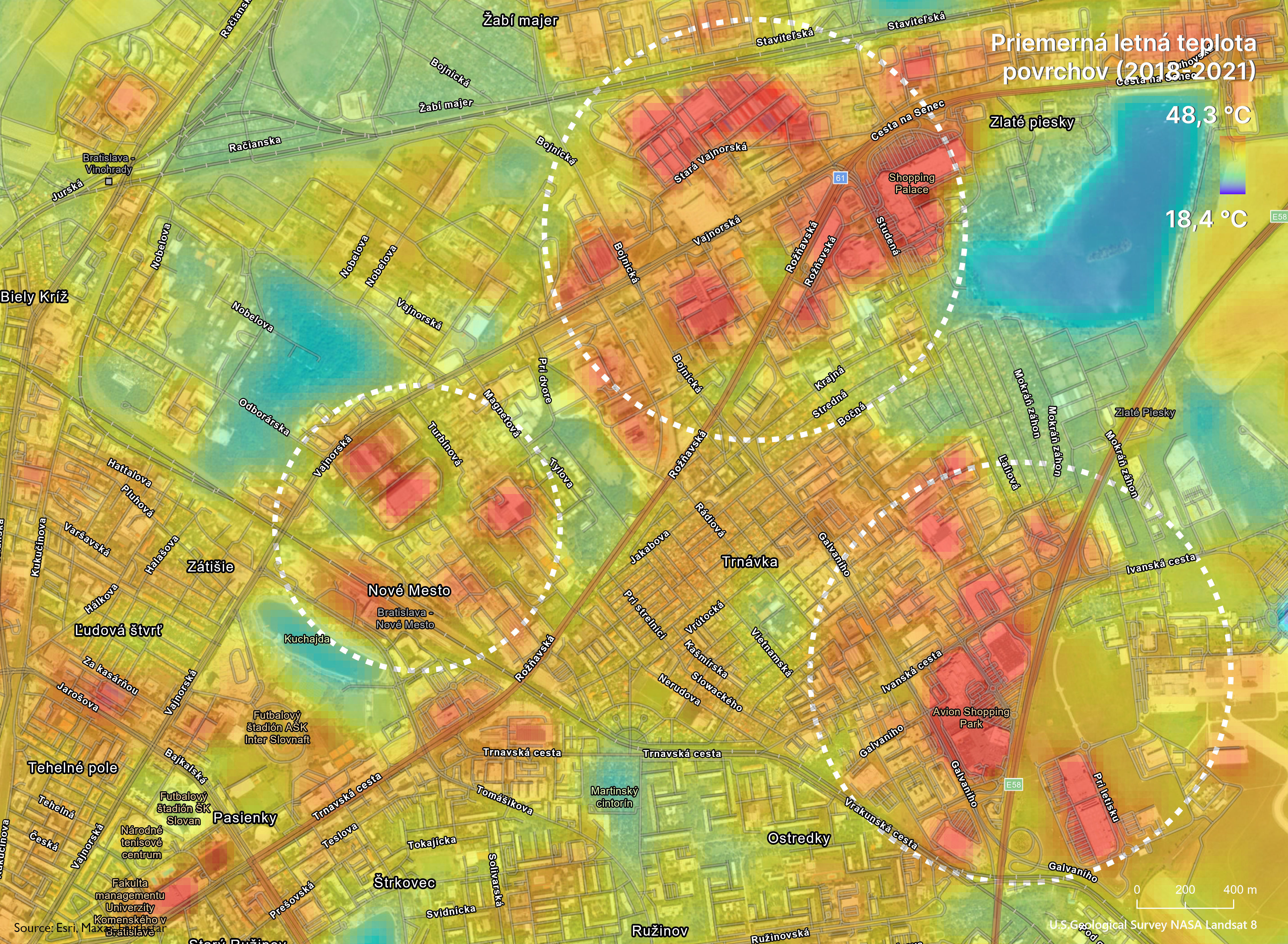 Na druhej strane autori štúdie upozorňujú, že mesto patrí medzi najteplejšie oblasti v SR a už dnes zažíva očakávaný rýchly rast teplôt vzduchu, častejšie suchá aj intenzívnejšie prívalové dažde. Do roku 2050 môže priemerná teplota v meste vzrásť o ďalšie 2 až 3 °C. S tým rastie aj zraniteľnosť obyvateľstva, najmä u seniorov a detí žijúcich v meste či na periférii mesta. Detaily sú dostupné v mapovom podklade.