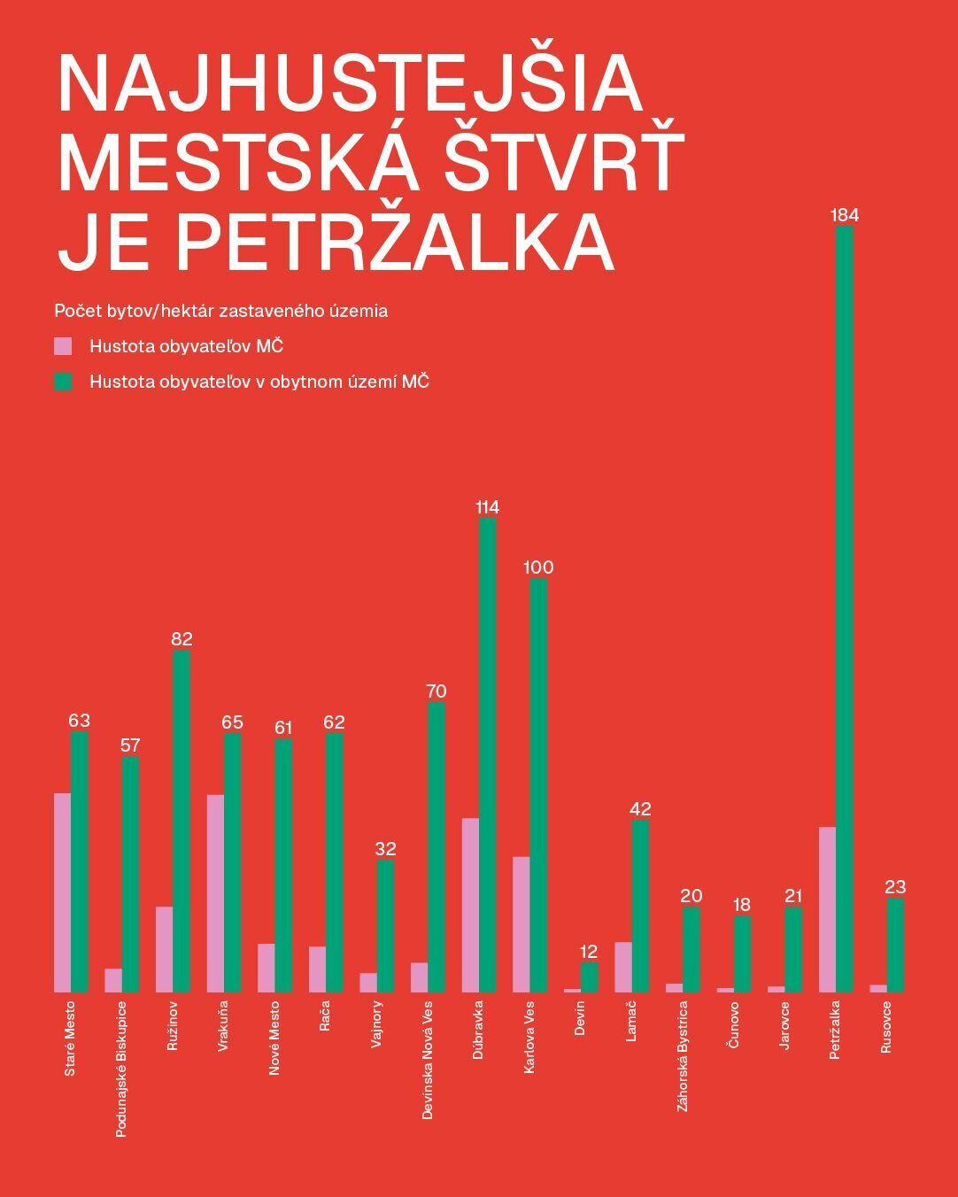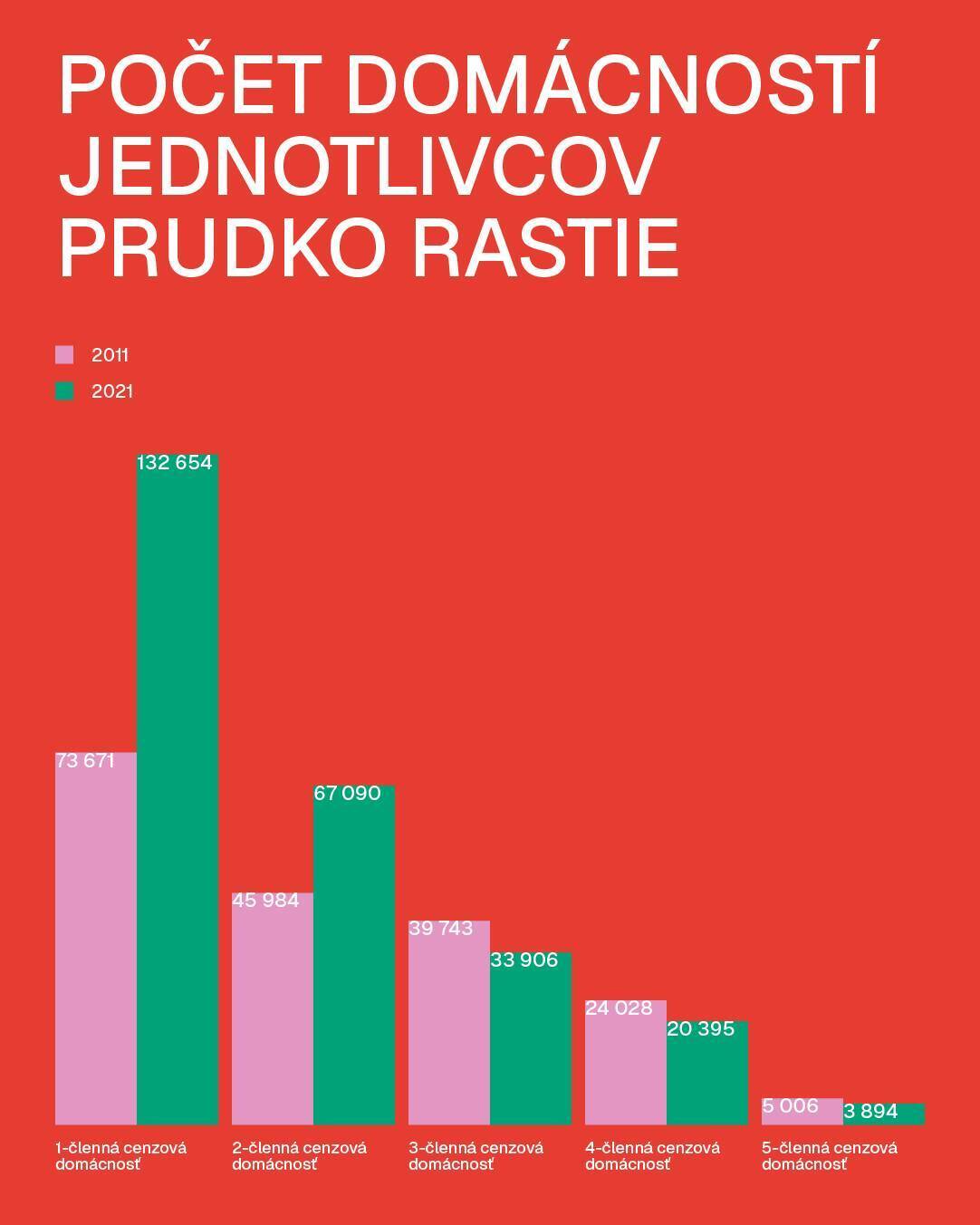 Počet obyvateľov a obyvateliek v Bratislave neustále rastie a hustota obyvateľstva naďalej klesá. Počet jednočlenných domácností sa za posledných 10 rokov (2011 – 2021) zdvojnásobil a podľa demografickej prognózy predpokladá mesto do roku 2050 priemerný počet obyvateľov na jednu bytovú jednotku menej ako 2 v každej mestskej časti. Pritom v 80. rokoch bol priemerný počet obyvateľov na jeden byt 4. Ide o radikálny pokles.