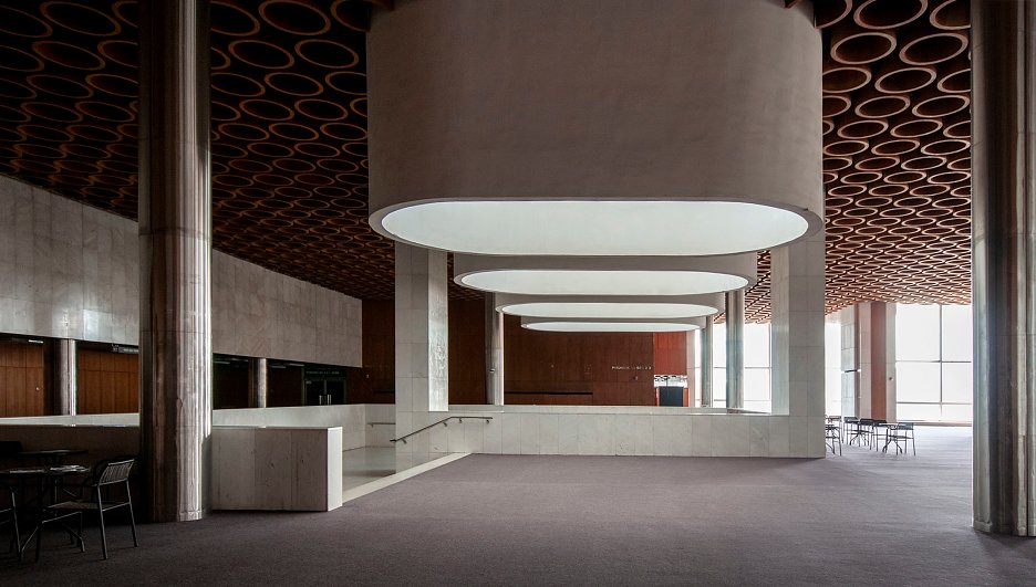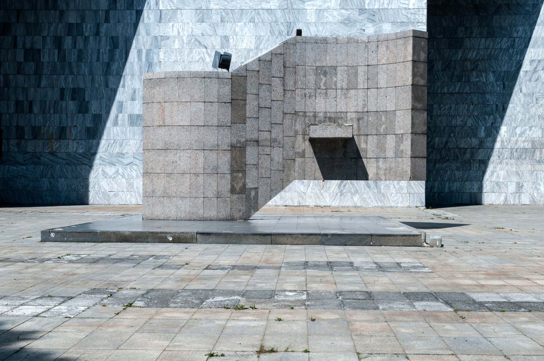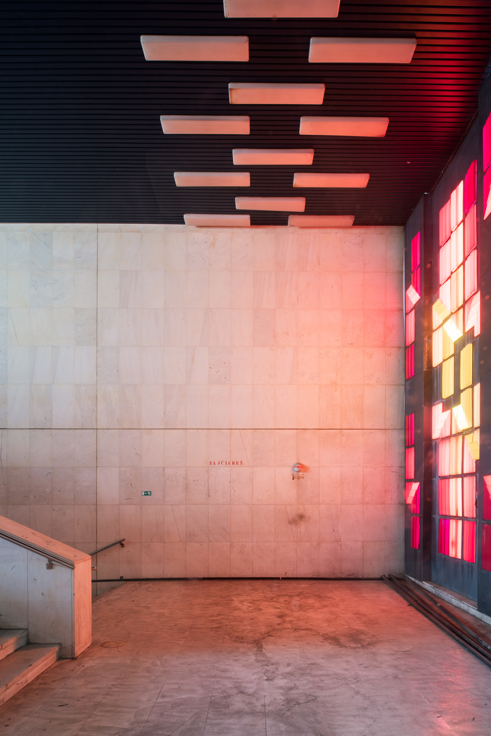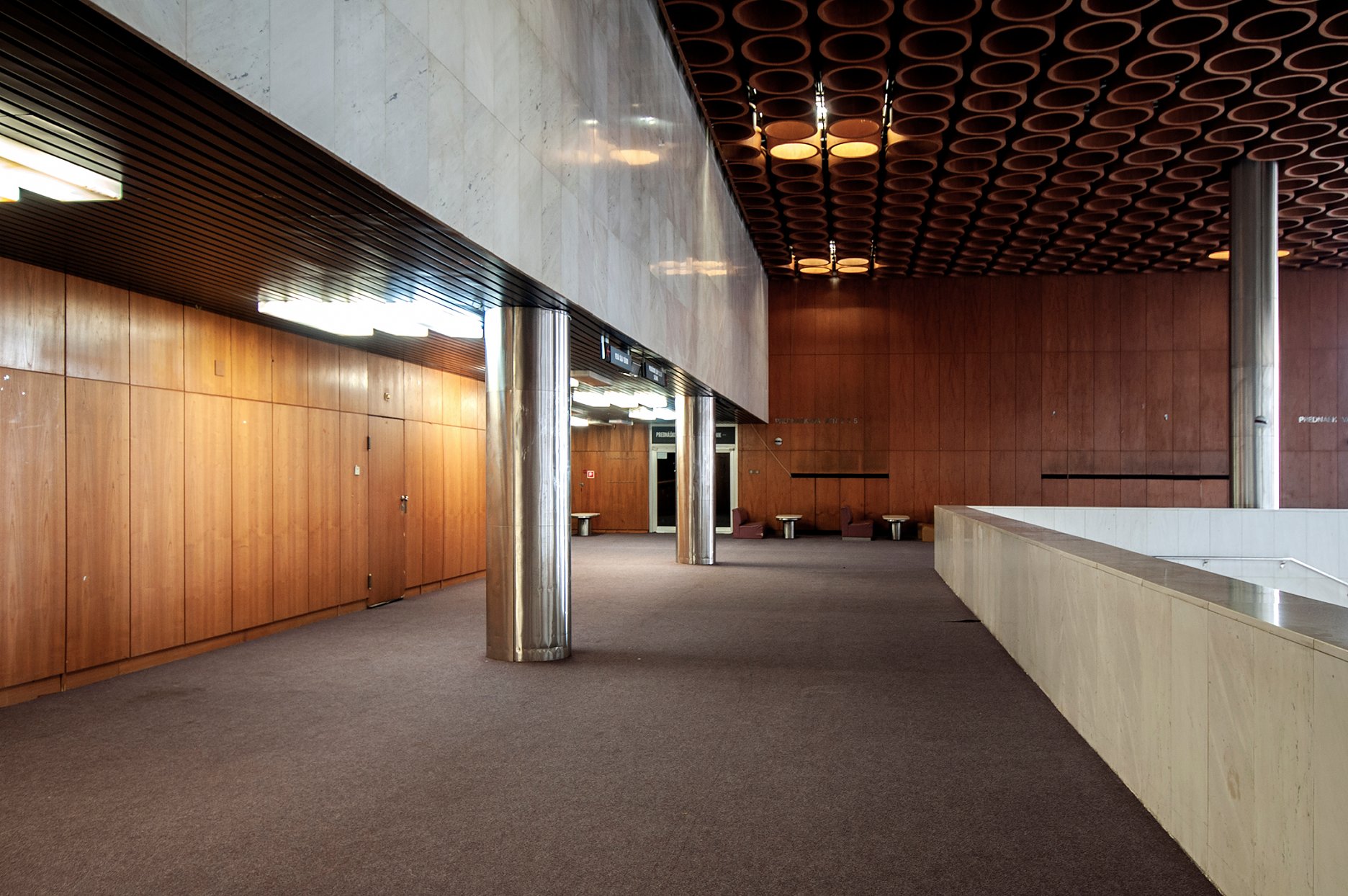 Pohľad na nadčasovú architektúru Domu odborov ešte v celistvej forme ilustrujú fotografi Olji Triašky Stefanović a Mateja Hakára: