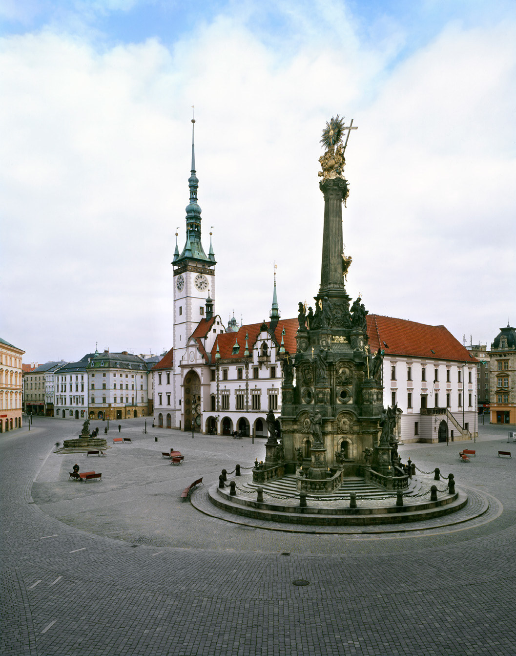 "Horní náměstí v Olomouci bylo tradičním dějištěm mnoha městských slavností, které se odehrávaly v tomto historickém sídle. Prostorově ho definuje radniční blok, který zaujímá centrální pozici veřejného prostranství, dále barokní sloup Nejsvětější Trojice a trojice kašen. Takto mimořádné prostředí se stalo předmětem soutěže na rehabilitaci veřejného prostoru. Do náměstí prostoupeného bohatými kulturními vrstvami vložil tým vítězných architektů ve složení Petr Hájek, Jaroslav Hlásek a Jan Šépka citlivě soudobou vrstvu, aniž by se snažili na svou intervenci strhávat nechtěnou pozornost. Autorům se stala východiskem idea náměstí jako „reprezentačního salonu města“. Na úpravu veřejných ploch architekti aplikovali princip, jehož výtvarný potenciál si téměř současně testovali také na prestižním úkolu revitalizace Jiřského náměstí na Pražském hradě. V Praze i v Olomouci se programově rozhodli pro inkluzivní přístup zproštěný hodnotících soudů o kvalitě, a tudíž relevanci jednotlivých historických vrstev. Jejich případnou selekci totiž nutně považovali za úzký názor podmíněný dobou, a proto by se mu mohlo dostat nepochopení a odsouzení v budoucnosti. Zároveň by estetické principy určující, kudy vést nekompromisní a nenávratný řez mezi zachováním či odstraněním stop minulosti, byly jen autorskou spekulací. Proto se architekti rozhodli ponechat v dlažbě náměstí veškeré dochované typy materiálů a forem zpracování, jejichž bohatost scelili pouze vložením mosazných pásek. Jejich úlohou bylo zdůraznit rozmanitý průběh historické dlažby. Povrchové úpravy architekti dále doplnili nově navrženými lavičkami a lampami. Historický význam Olomouce navíc stvrdili bronzovým modelem města."