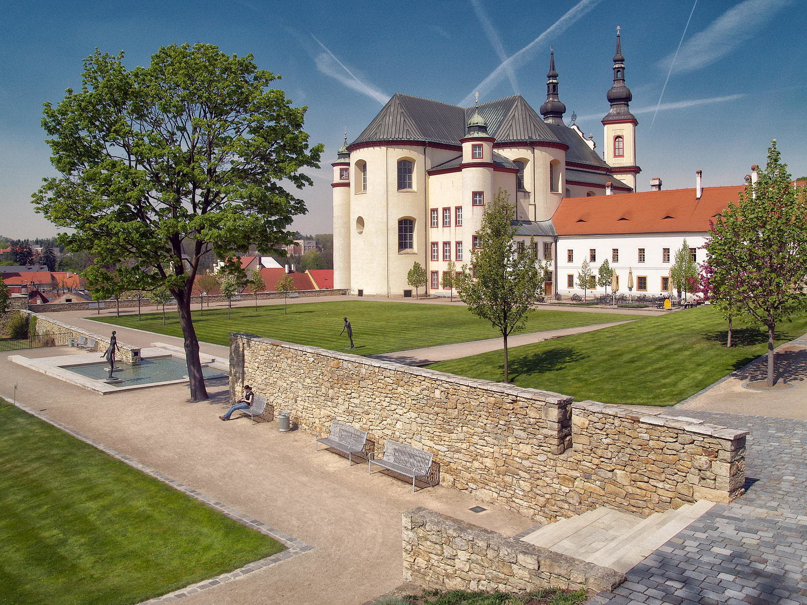 "Desetitisícová Litomyšl se stala v Česku příkladem historického města, které nechce žít jenom odkazem na úcty hodnou minulost, ale rozhodlo se cílevědomě budovat přítomnosti prostřednictvím prosazování kvalitní architektury. Její rozkvět (často označovaný jako „litomyšlský zázrak“) po roce 1990 je neodmyslitelně spojen s působením starosty Miroslava Brýdla, který začal spolupracovat s celou řadou významných českých architektů. Od počátku, podle charakteru úkolu, byly vypisovány užší či otevřené architektonické soutěže. Završením úspěšných stavebních akcí zaměřených v deváté dekádě na úpravy veřejných prostranství byla soutěž na obnovu Klášterních zahrad, jíž se v roce 1997 zúčastnilo dvaadvacet architektonických týmů. Vítězství si „vybojoval“ návrh architektů Václava Babky, Radko Květa a Zdeňka Sendlera, jehož motto znělo: „Zahrada-divadlo, divadlo-zahrada“. Mezi barokním piaristickým kostelem Nalezení sv. Kříže a gotickým kostelem Povýšení svatého kříže vznikl park, kde na ploše více 11 300 metrů čtverečních lidé zažívají povznášející pocity ze souladu místa s bezprostředním okolím, jež se k němu vztahuje. Zahrady nabízejí scénu s výhledy na město, na jeho památky, na staletí utvářenou střešní krajinu rozpouštějící se v polích na tušeném horizontu. Architekti následovali členění podle původní parcelace, takže ponechali otevřený prostor vymezený jen opravenými či nově doplněnými opukovými zídkami, v jejichž sousedství vedou cesty. Dalším příznačným prvkem jsou rozlehlé trávníky sloužící k odpočinku, vodní plocha se sochami od sochaře Olbrama Zoubka a klasický, až plečnikovsky pojatý altán s mohutnými válcovými pilíři podpírajícími křehkou střechu: jedná se o nejvyšší bod areálu. Proměna Klášterních zahrad odstartovala rekonstrukce památkových objektů, které se v jednadvacátém století uskutečnily na návrší v blízkosti zdejšího renesančního zámku, jenž byl v roce 1999 zapsán na seznam Světového dědictví UNESCO."