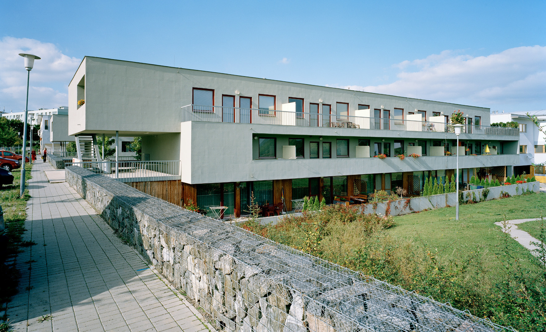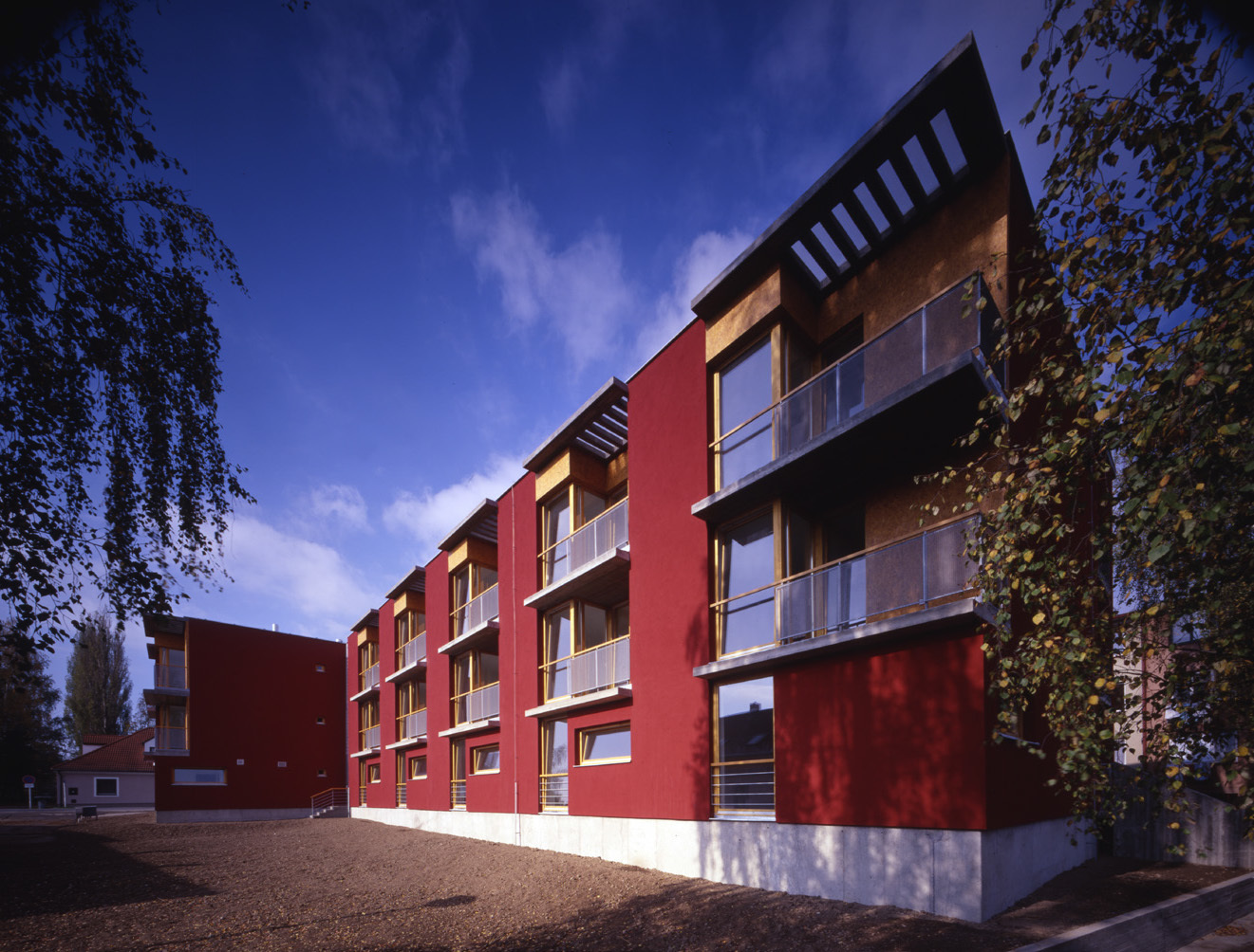 "Venkovská města v České republice zápasí s úbytkem svých obyvatel. Městská rada Horažďovic v čele se starostou Václavem Trčkou se proto v devadesátých letech usnesla postavit pro mladé spoluobčany dům s malými byty a nízkou činží, aby je tak udržela ve městě. Vypsala na jeho projekt veřejnou architektonickou soutěž, kterou vyhrál ateliér Josefa Pleskota. Právě díky veřejné soutěži a její osvícené porotě se stavební fond nevelkého města v Pošumaví mohl obohatit o dílo předního pražského architekta. V konceptu svého horažďovického objektu se Pleskotův ateliér vrátil k typu pavlačového domu, jaký byl běžný u bytových staveb 19. století a jaký se poté používal v meziválečné době pro projekty sociálního bydlení. Obohatil ho však několika inovacemi, k nimž patří nízké jednopodlažní přístavky ve dvoře, a především průhledný dřevěný plášť, který pavlače zakrývá a chrání jejich uživatele před hlukem z ulice. Z pavlačí se pak vchází do několika typů nevelkých, ale důmyslně vyřešených bytů. Centrum Horažďovic bylo založeno ve 13. století a má dnes statut městské památkové zóny. Dům od Pleskotova ateliéru sousedí s neorenesanční budovou Husova sboru a naproti němu stojí pozdně gotický klášterní kostel. Architekti se tak museli vyrovnat s otázkou, jak nový dům pojmout, aby s prostředím starého města dobře komunikoval. Chtěli se však také vyhnout metodě „kontextuální mimesis“, která se zakládá na tom, že nové dílo nějakým způsobem imituje charakteristické prvky svého okolí. Takové řešení tehdy Pleskot označoval za „pseudopamátkářství“ a asi už v roce 1994 pronesl známá slova o tom, že „kontextuálnost nespočívá v napodobování“. Více než tvary oken nebo střech ho ve staré městské tkáni zaujala její morfologie. Postřehl, že domy starých Horažďovic se velmi často skládají z většího objektu obráceného do ulice a z nižšího příčného křídla skrytého ve dvoře. Tento starý morfologický typ pak jeho ateliér oblékl do moderního minimalistického pláště."