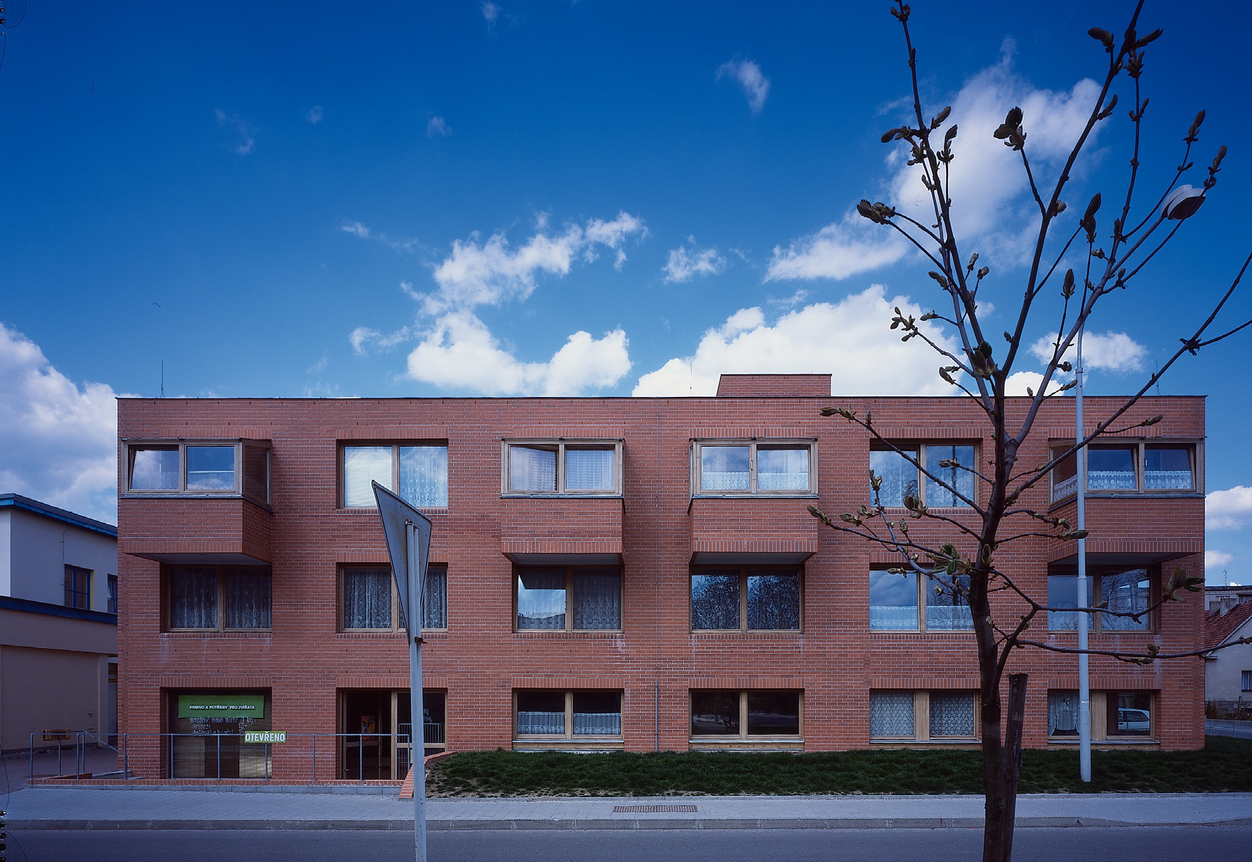 "Nevelké město Horažďovice v jihozápadních Čechách uspořádalo v letech 1997–1998 dvě veřejné architektonické soutěže, což tehdy nebylo obvyklé ani v Praze nebo v Brně. V druhé z nich, na projekt bytového domu pro seniory s pečovatelskou službou, zvítězil pražský ateliér Aleny Šrámkové, v němž tehdy pracovali také Tomáš Koumar a Jan Hájek. Alena Šrámková patří k nejvýraznějším osobnostem české architektury posledních padesáti let. Dříve než jiní si uvědomila, jaká rizika přináší pro architektonickou tvorbu společnost konzumerismu. Houževnatě hledala prostředky, jimiž by vyjádřila svou distanci od pomíjivých mód a povrchních atrakcí popkultury. V sedmdesátých letech 20. století je nalezla v evropském neoracionalismu. Na rozdíl od jiných architektů tohoto směru, například od Alda Rossiho nebo Osvalda Matthiase Ungerse, však věnovala velký zájem hmatovým kvalitám stavby, její pokožce či „pleti“, jak tomu sama říkala. Fasády svých domů proto ráda utvářela z neomítaných cihel. A právě o této její zálibě v cihlových obkladech poskytují horažďovické domy pro seniory jeden z mnoha důkazů. Pozemek pro nové domy leží mimo památkovou zónu Horažďovic. Ateliér Aleny Šrámkové je přesto pojal tak, jako by v ní nová stavba měla stát. Rozdělil ji do dvou téměř stejných objektů oddělených od sebe zahradou pro letní pobyt. Do obou domů pak vložil byty o několika různých velikostech. Komfort bytů v horních patrech obohacují kryté balkony či arkýře s šikmými stříškami, které se u celého areálu postaraly o jeho silný výraz. Do všech bytů vstupují jejich uživatelé z chodeb při jedné straně každého domu, propojených dlouhým schodištěm. Chodba se pak rozšiřuje a dostává rozměry malého sálu, v němž se obyvatelé obou domů můžou scházet, chtějí-li trávit svůj čas společně. Rozhovory s nimi přinášejí svědectví, že se jim v obou domech žije dobře. Se stavbou domů pro seniory se však nadějný architektonický rozmach Horažďovic zatím uzavřel."