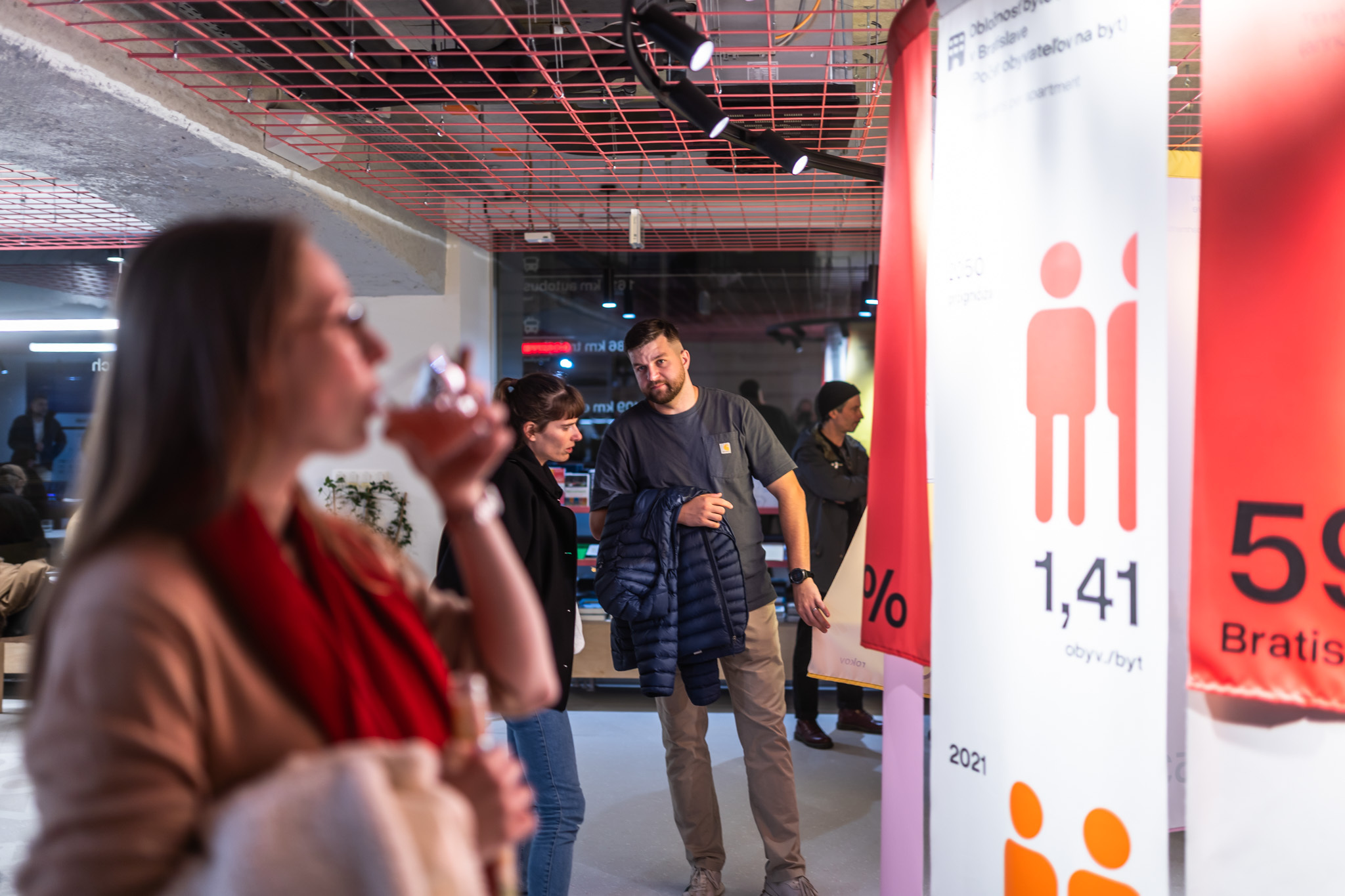 „Z miliónov informácií sme sa snažili vybrať také, ktoré sa dajú zaujímavo interpretovať a uviesť do kontextu. Napr. ako sa vyvíjal počet áut v Bratislave, aká je ročná strata času v zápchach v jednotlivých veľkomestách, ako sa menil priemerný počet obyvateľov na byt alebo počet detí dochádzajúcich do škôl? Mnohé z týchto dát sme už prezentovali online formou a tu ich návštevníci nájdu v offline priestore na konkrétnych nosičoch,“ hovorí jeden z tvorcov výstavy Richard Hluško z Metropolitného inštitútu Bratislavy.