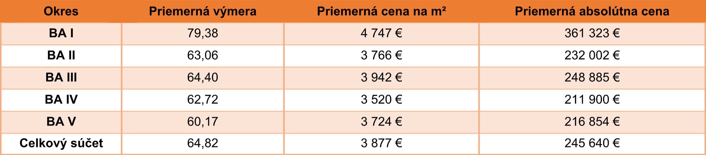 Priemerná cena bytov ponúkaných v Bratislave z druhej ruky sa v priebehu druhého štvrťroka dostala na 3 877 €/m², čo v medziročnom porovnaní predstavuje nárast o 21 %. Oproti druhému štvrťroku vzrástla o 2,4 %, no keď zoberieme do úvahy aj mesiace október a november, tak môžeme povedať, že sa cenový rast starších bytov zastavil. Aj v prípade starších bytov je tak evidentný trend schladenia dopytu, rovnako ako pri novostavbách. Tie na konci tretieho štvrťroku dosiahli 4 899 €/m², čo bolo rovnaké číslo ako v prípade druhého štvrťroku 2022.