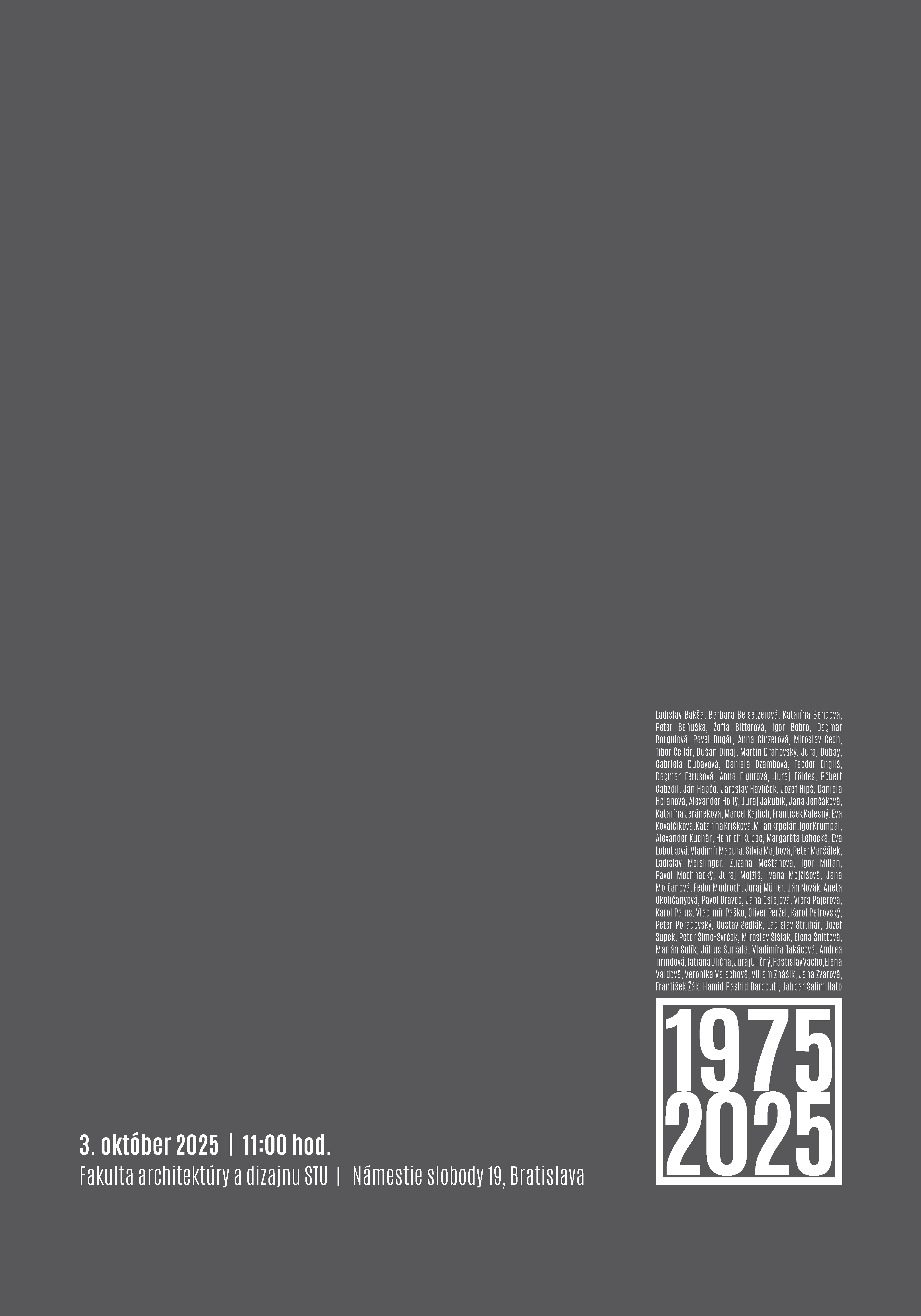Dňa 3. 10. 2025 sa v priestoroch Fakulty architektúry a dizajnu Slovenskej technickej univerzity uskutočnilo po 50 rokoch stretnutie absolventov štúdia architektúry z rokov 1969 – 1975.