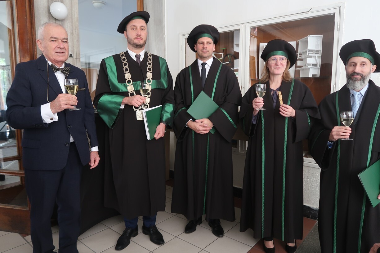 A tak Ti ďakujeme Alma Mater, že si v nás rozvinula túto schopnosť – tú schopnosť prekonávať tvorbou všetky úskalia. Ďakujeme Vám slovutné spectábility, honorábility, profesori, docenti, pedagógovia, že stojíte na miestach svojich predchodcov, našich profesorov – milovaných, oslavovaných ale niekedy aj ohováraných a zatracovaných a že ste nás prijali opäť medzi seba. Ďakujeme svojim životným partnerom, deťom a už aj vnúčatám, že to s nami vydržali aj vtedy, keď sme opantaní ošiaľom tvorby nedokázali prísť domov na večeru na čas. A ďakujem všetkým, ktorí tvorili toto stretnutie svojím podielom i tým že tu jednoducho boli. Prajem Vám príjemný slávnostný zážitok a dobré zdravie i požehnanie nášho Všemohúceho.
