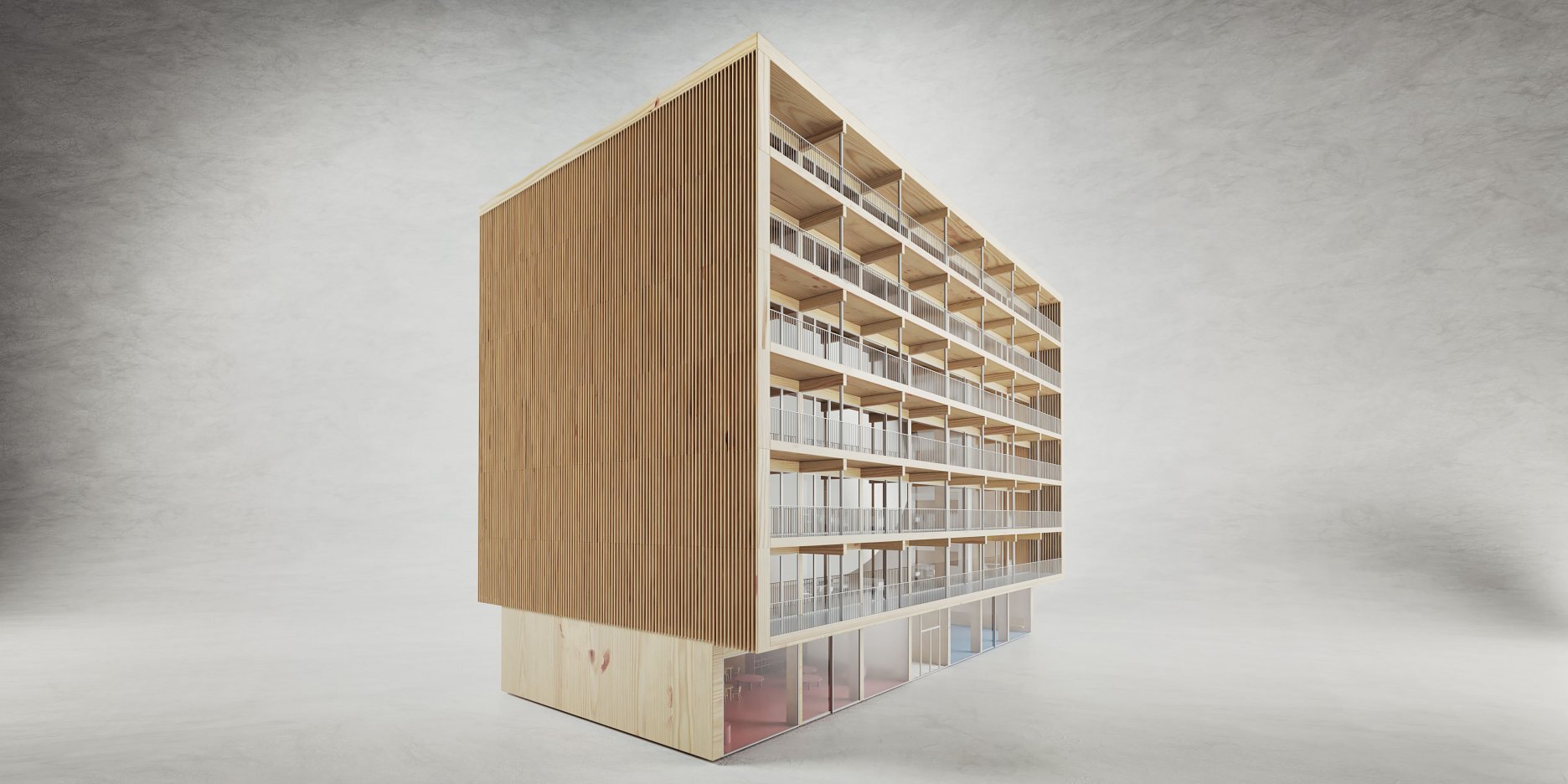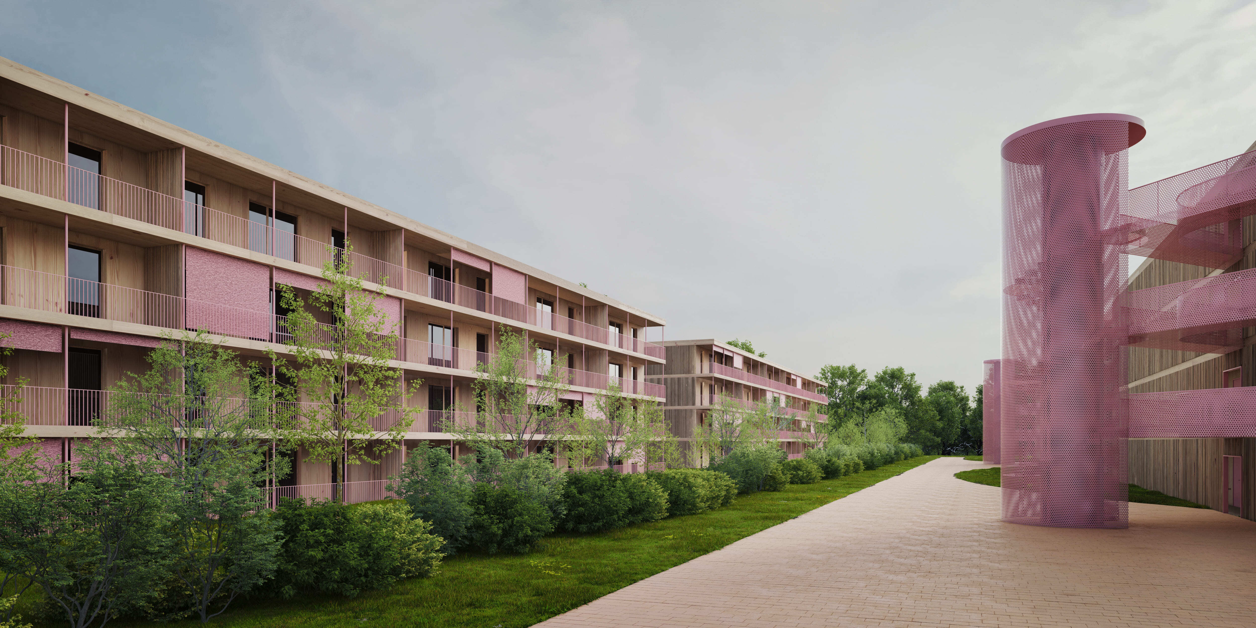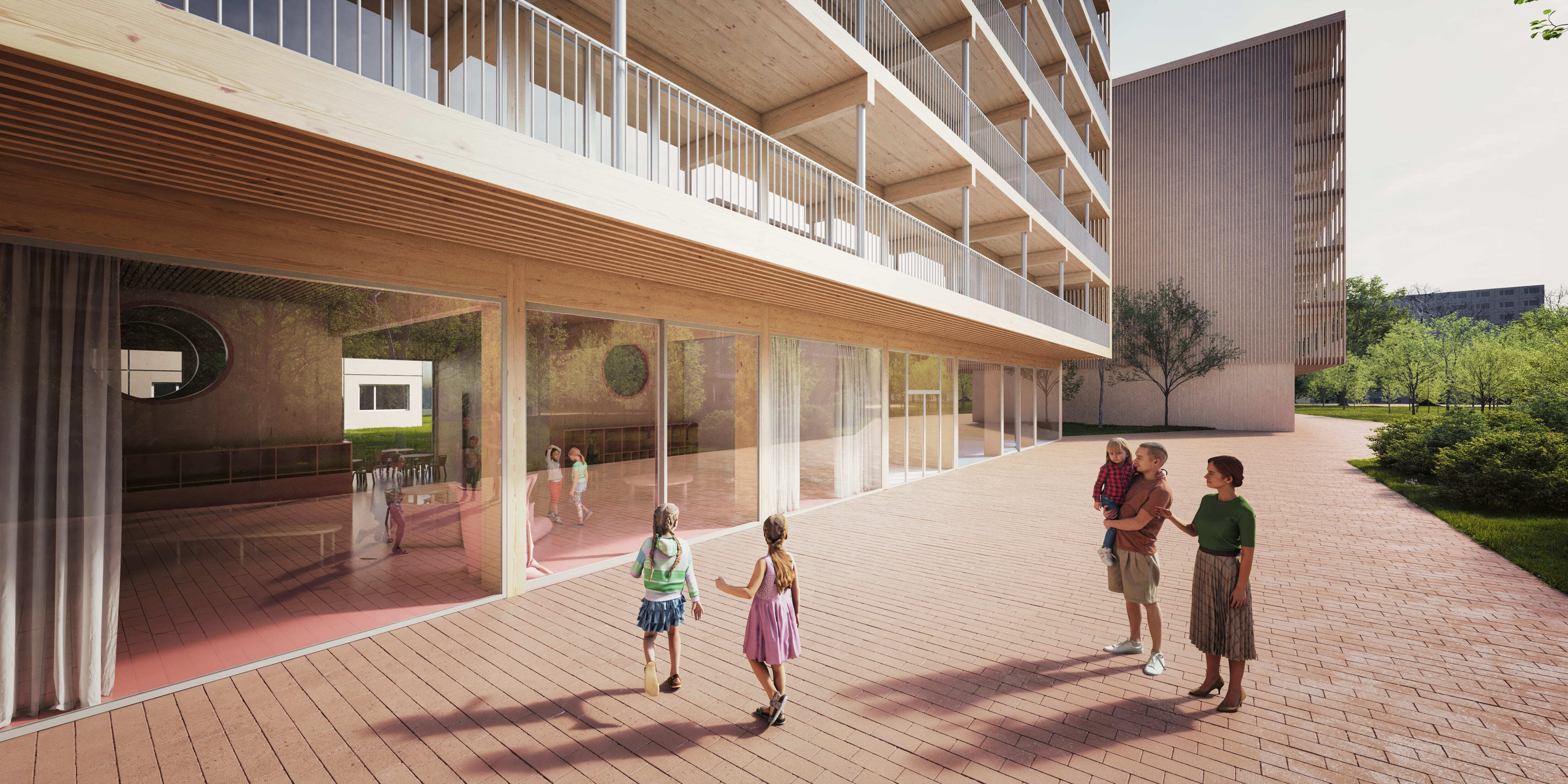 Prvním je pavlačový dům inspirovaný Bauhausem, druhým je přepracovaný panelový dům ze 70. let. Hlavní charakteristikou obou projektů jsou přitom dřevěné konstrukce odpovídající dnešním světovým inovacím s ohledem na ekologii, dostupnost, efektivitu realizace a cirkulární stavebnictví.