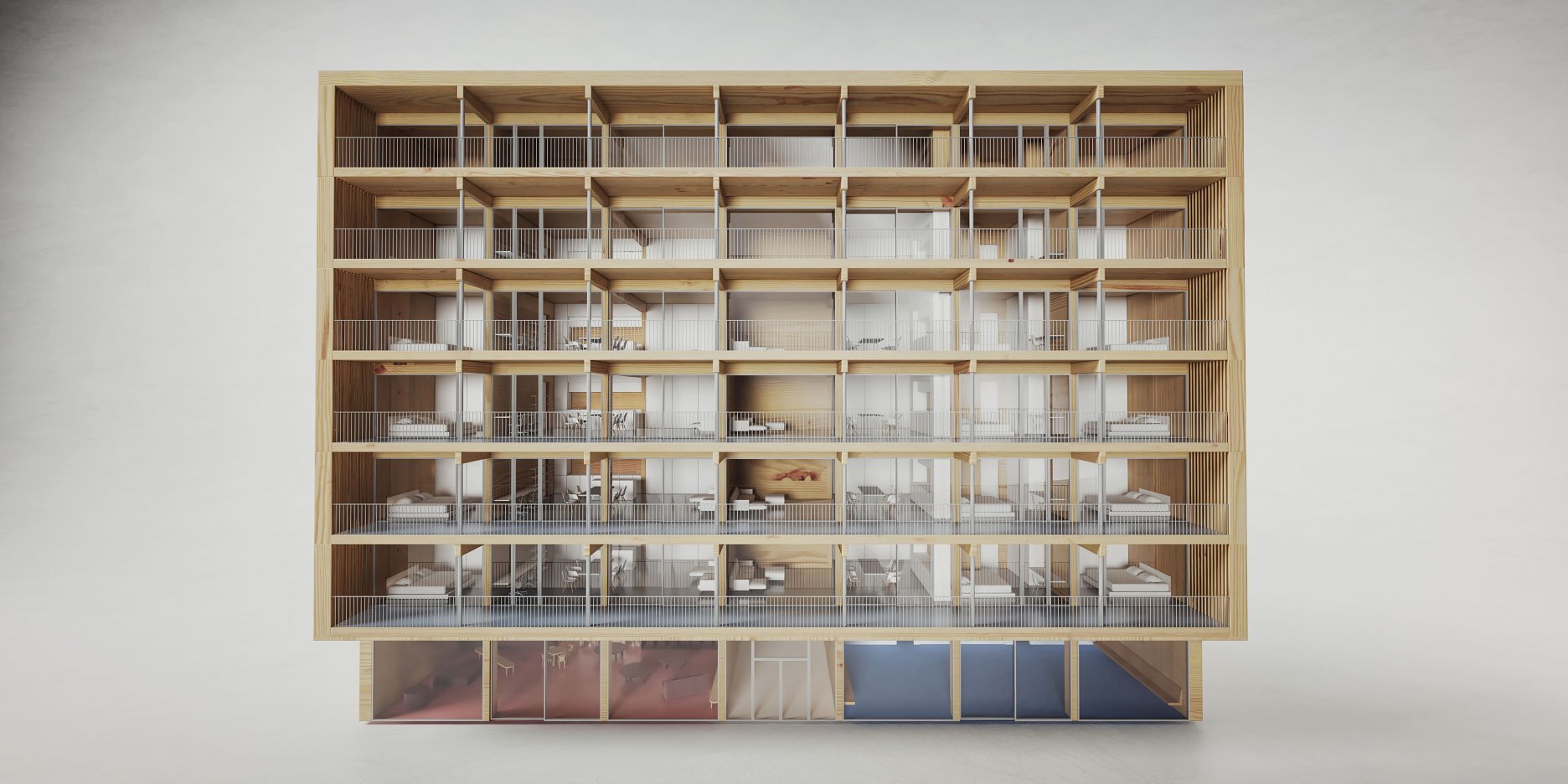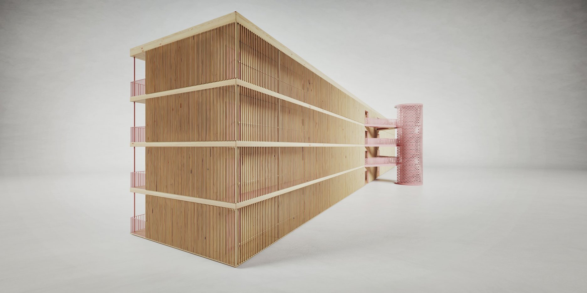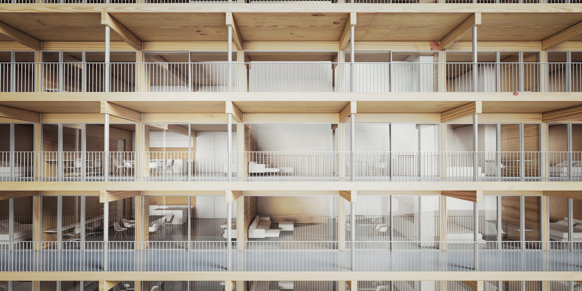 Prvním je pavlačový dům inspirovaný Bauhausem, druhým je přepracovaný panelový dům ze 70. let. Hlavní charakteristikou obou projektů jsou přitom dřevěné konstrukce odpovídající dnešním světovým inovacím s ohledem na ekologii, dostupnost, efektivitu realizace a cirkulární stavebnictví.