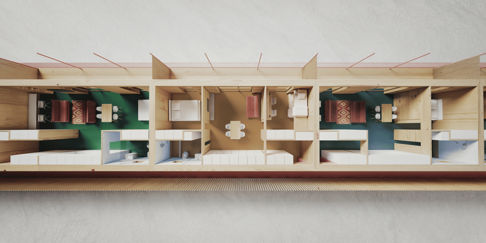 Navrhli jsme typové projekty bytových domů ze dřeva jako reakci na potřebu dostupného a udržitelného bydlení v českém kontextu. Projekt vychází z historicky ověřených řešení, která jsme přizpůsobili současným nárokům. Místo vymýšlení nových systémů jsme modernizovali to, co v minulosti již fungovalo.